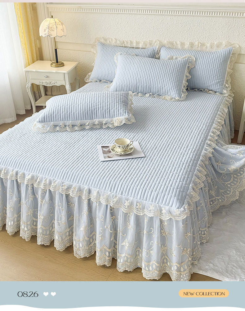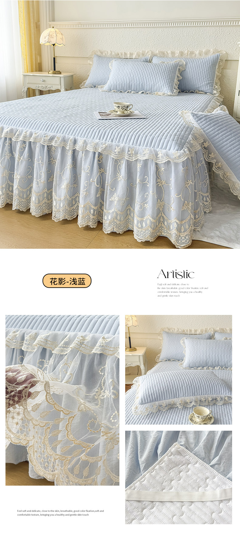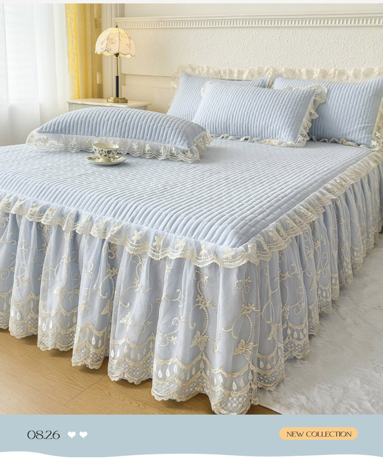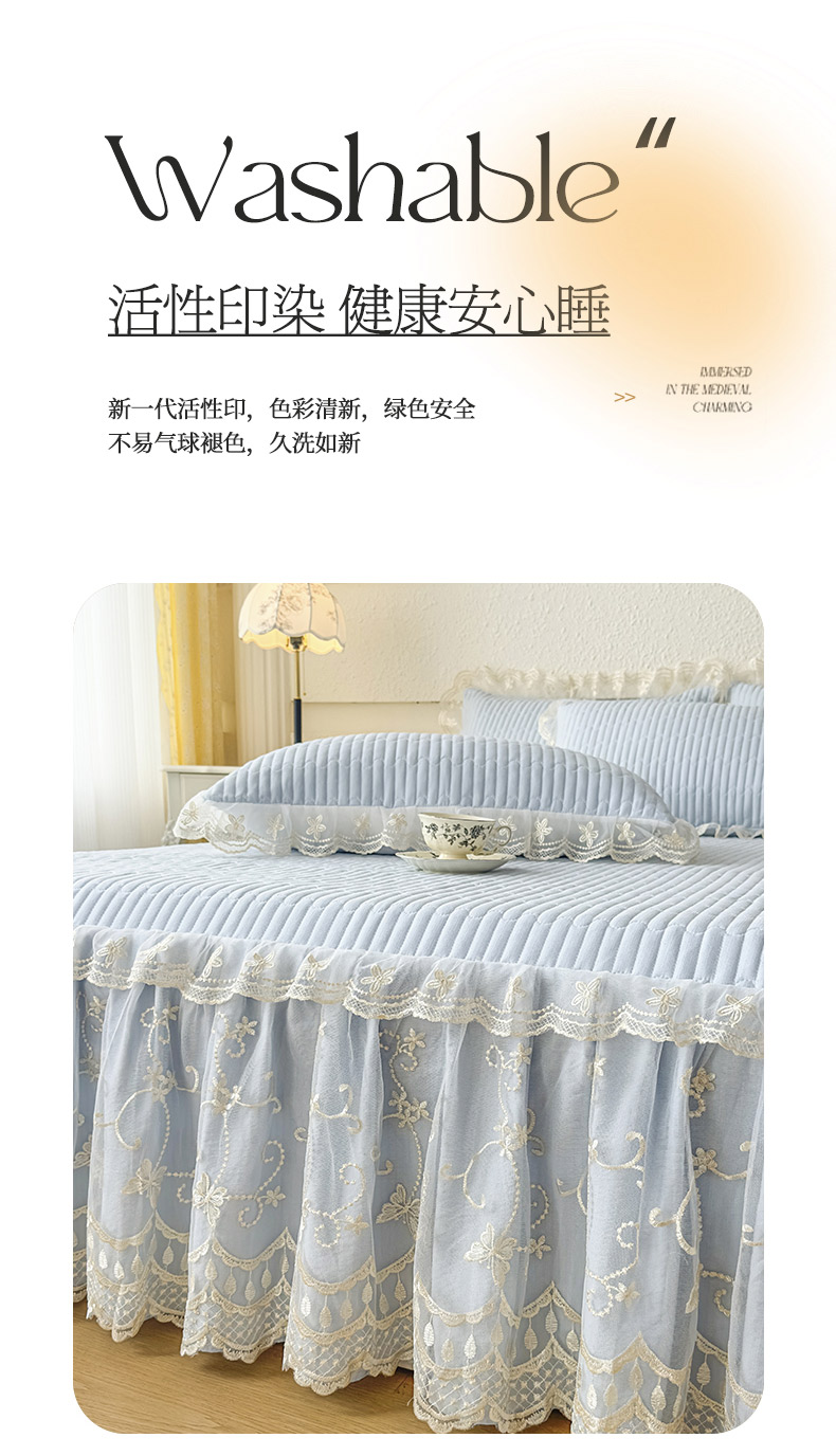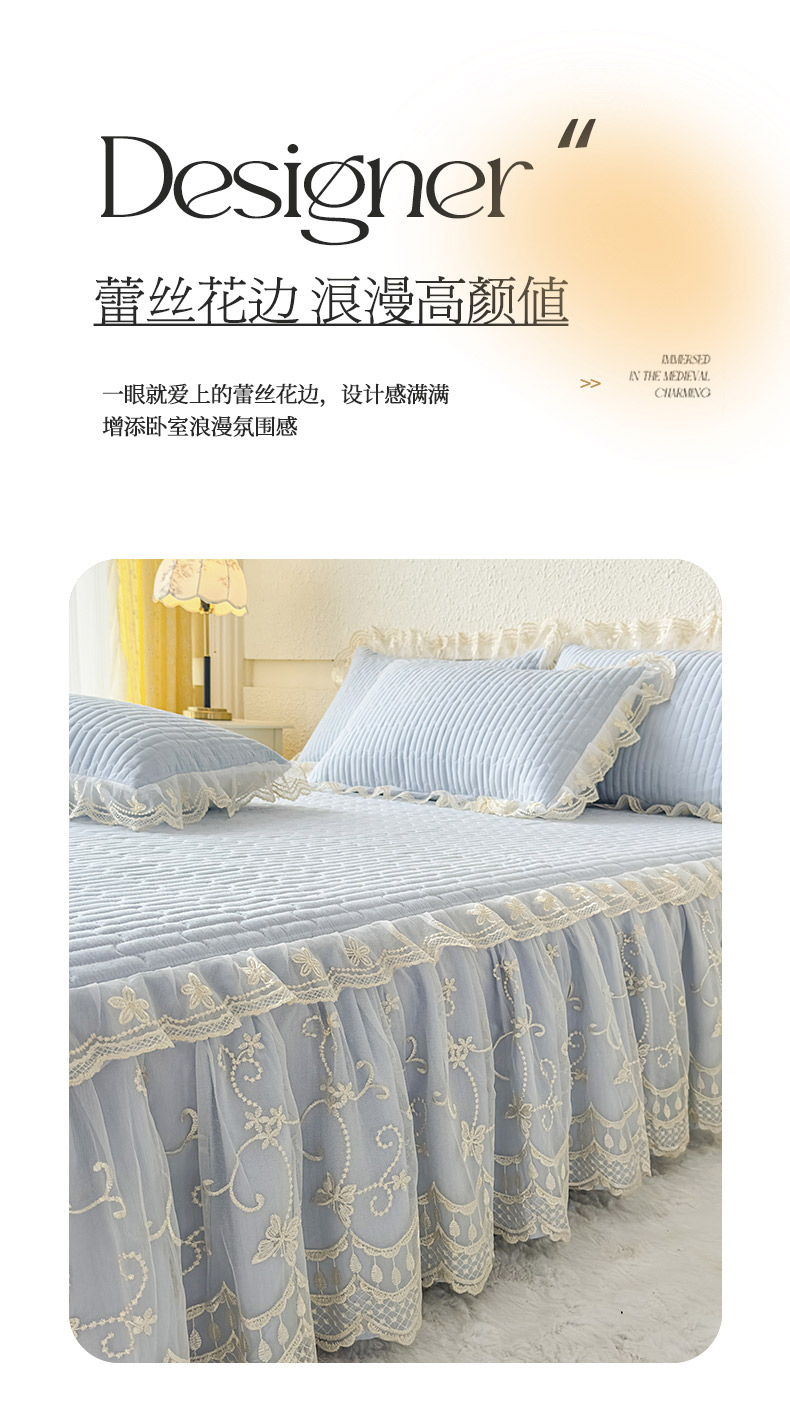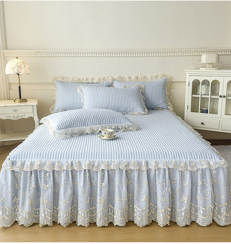 • 91家纺网 家纺一手货源 找家纺 予梦家纺 2025新款夹棉床裙单床裙单品床裙单件床裙-花影 花影-浅蓝