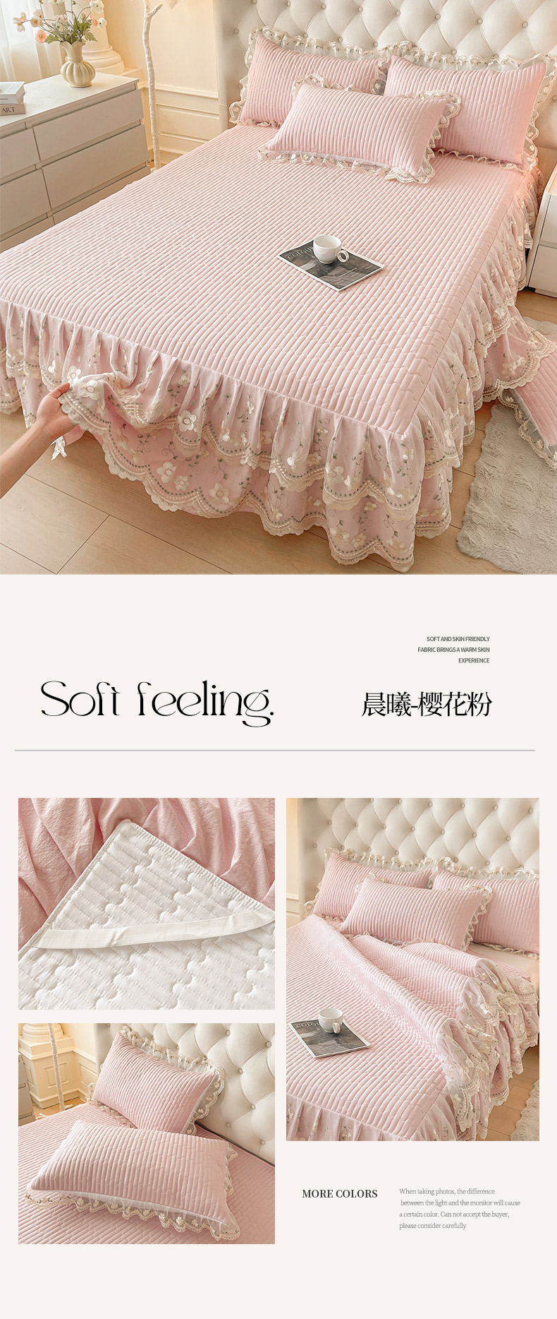 (总)鼎丰家纺 2025新款皱皱纱夹棉床裙三件套-花影系列,花影-豆沙,花影-浅蓝,花影-浅米,花影-浅玉,花影-清新绿,花影-樱花粉