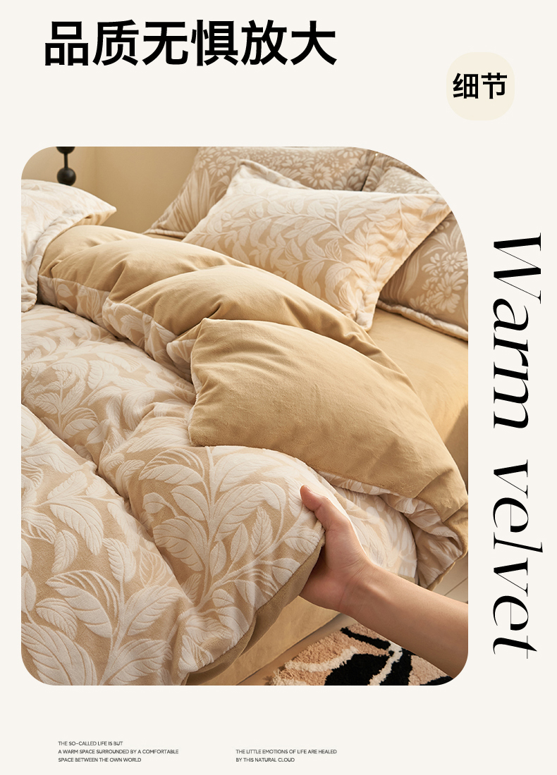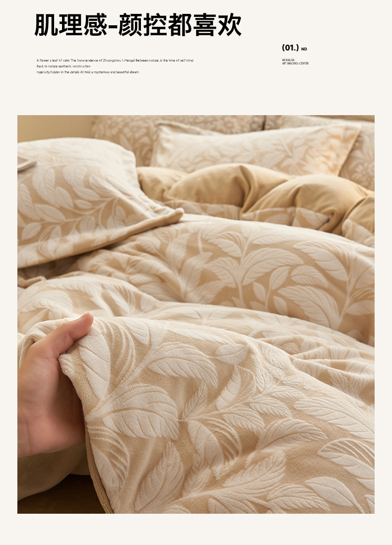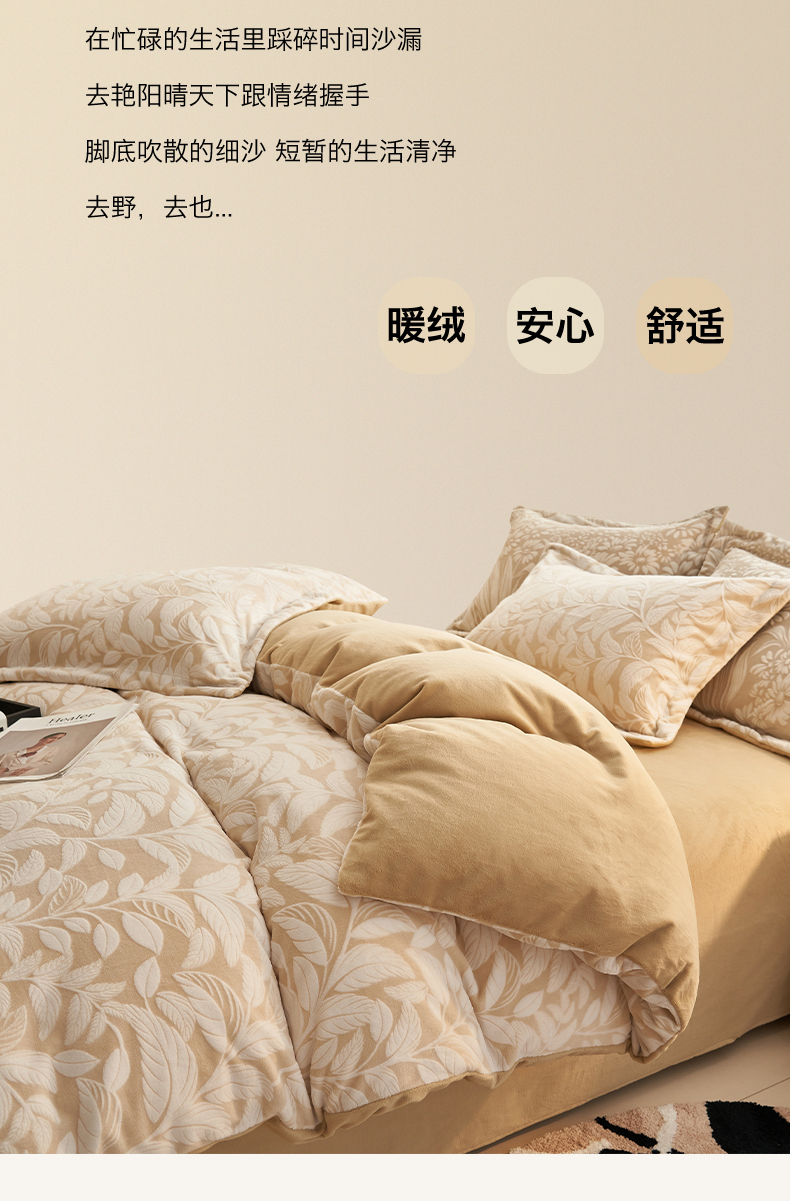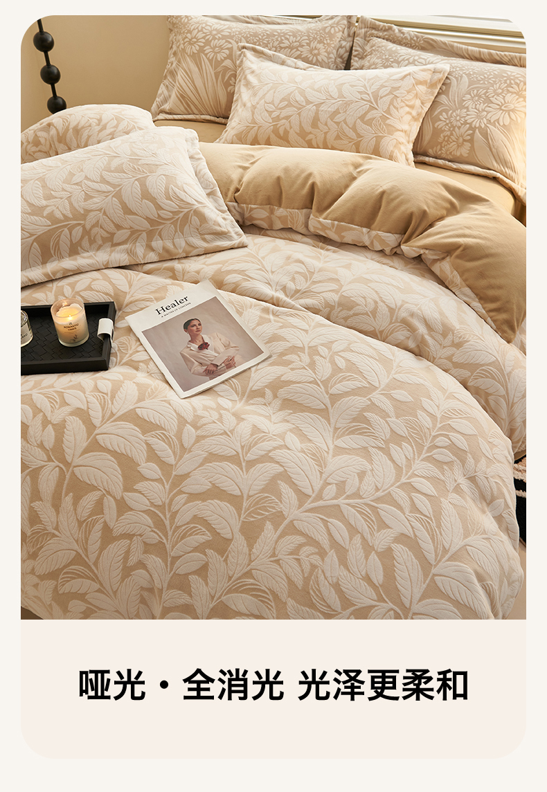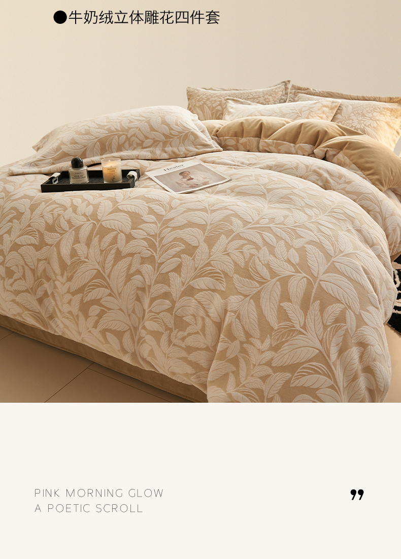 恒爱家纺 2025新款牛奶绒立体剪花四件套 春和蜜叶-浅咖