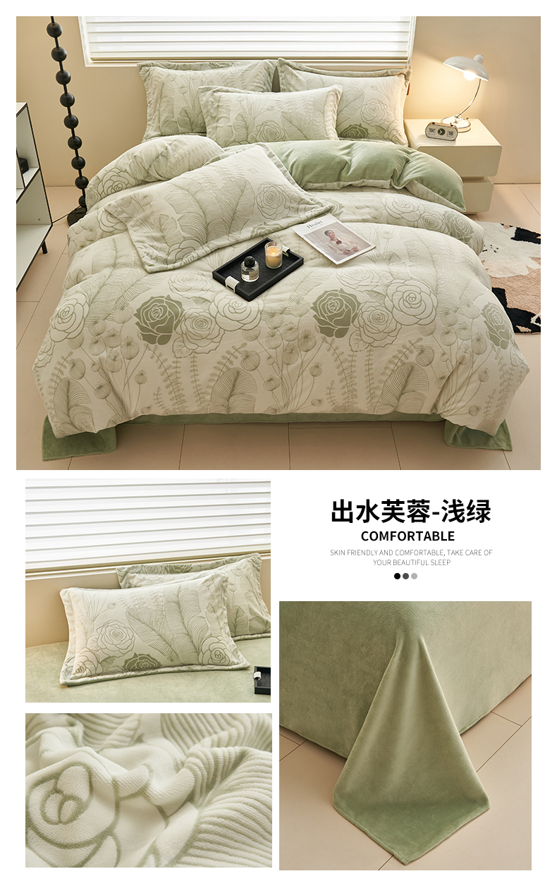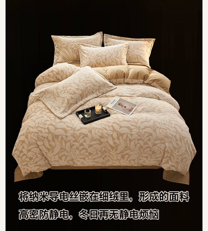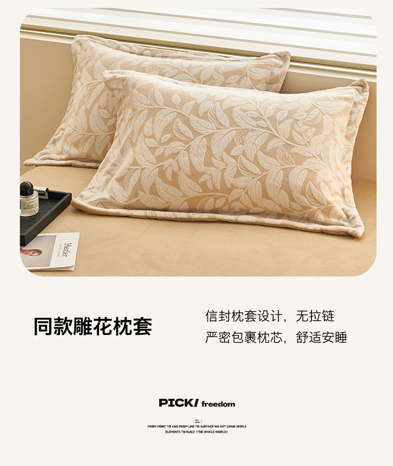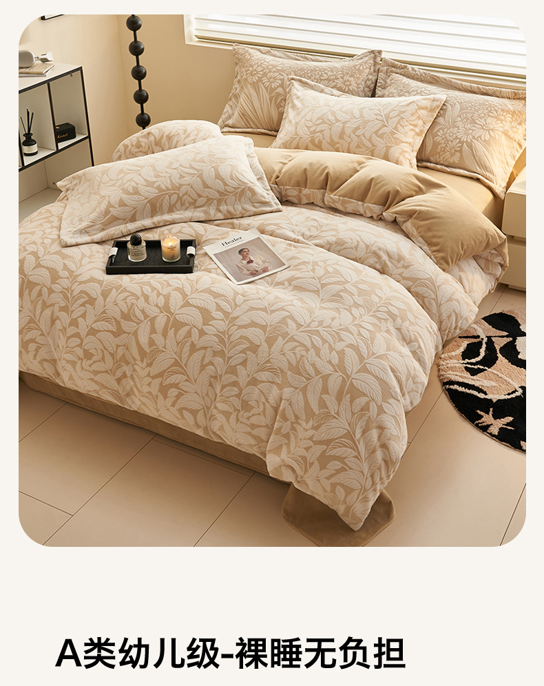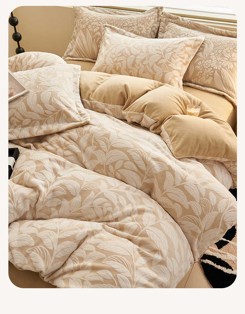 恒爱家纺 2025新款牛奶绒立体剪花四件套 春和蜜叶-浅咖