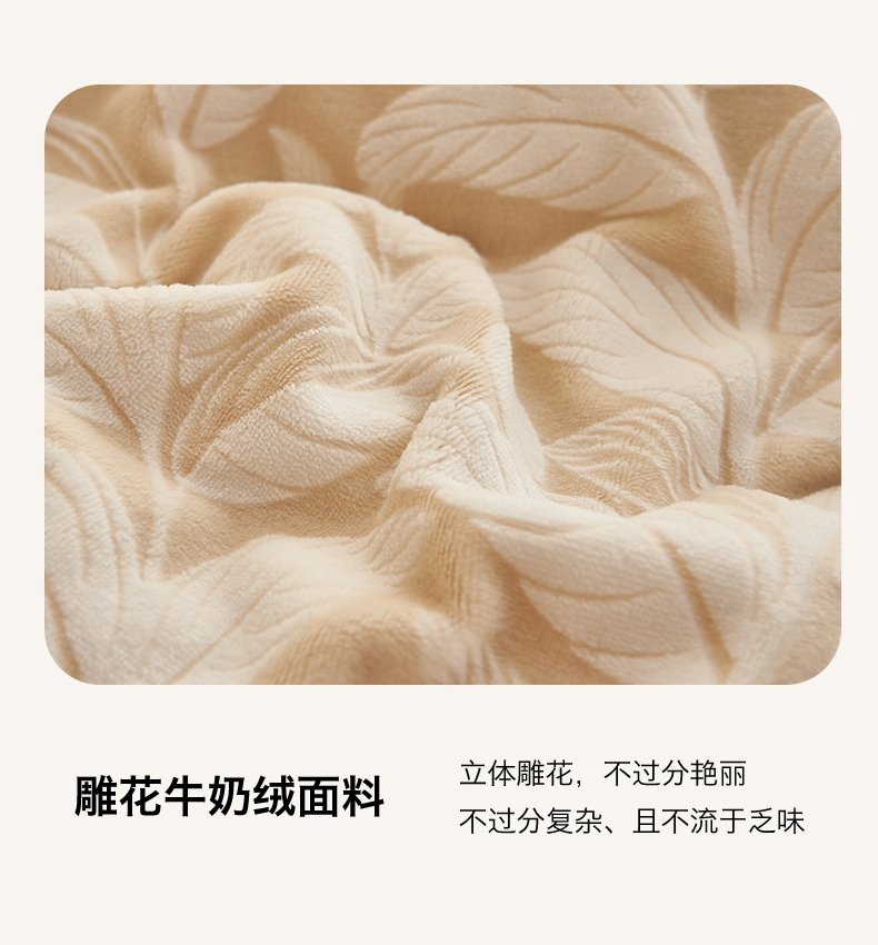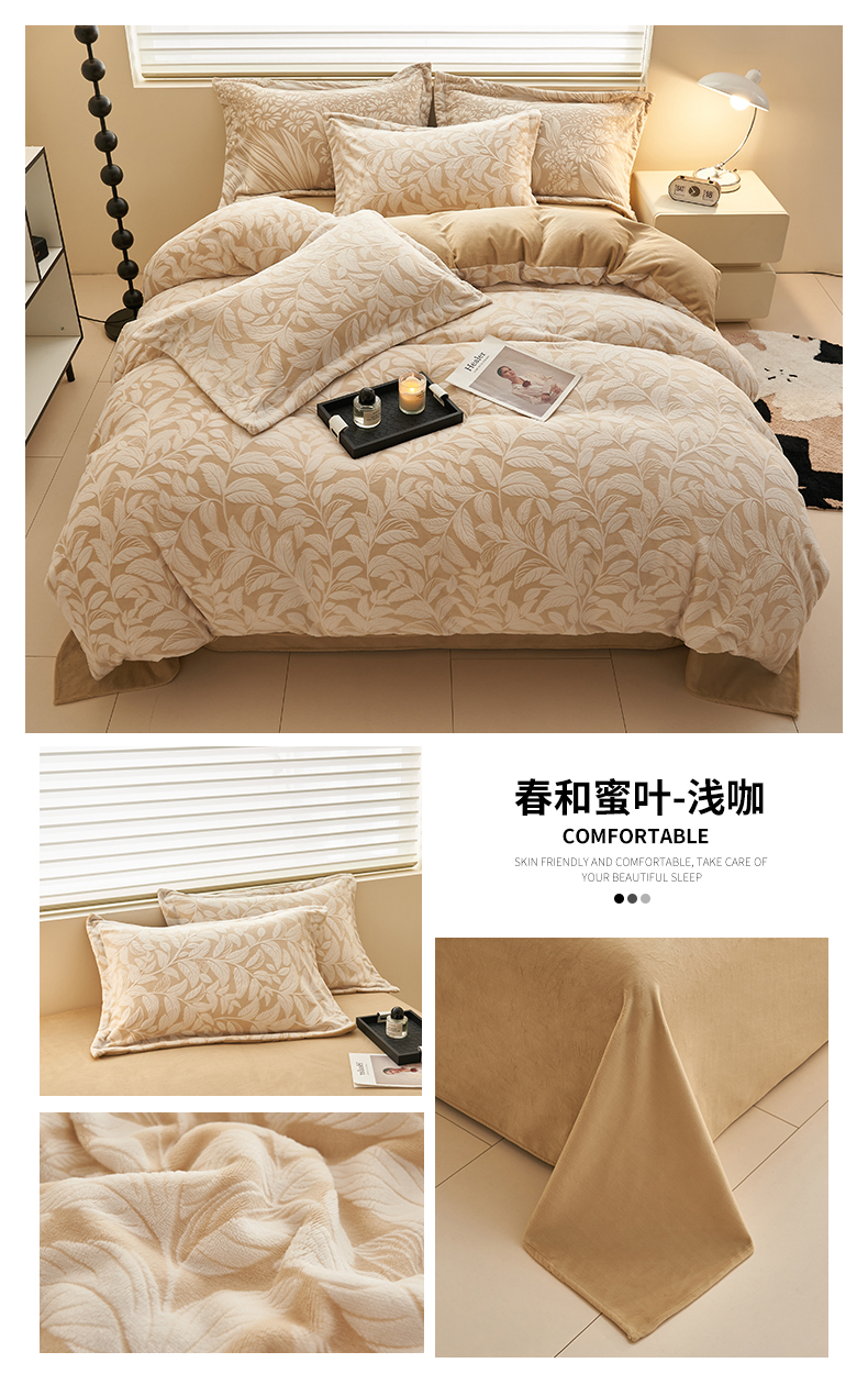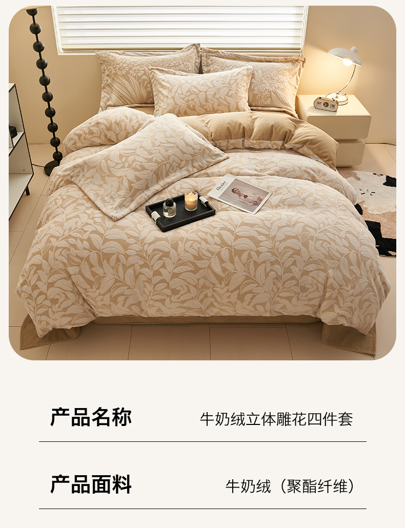 商品名称:恒爱家纺 2025新款牛奶绒立体剪花四件套 春和蜜叶-浅咖
