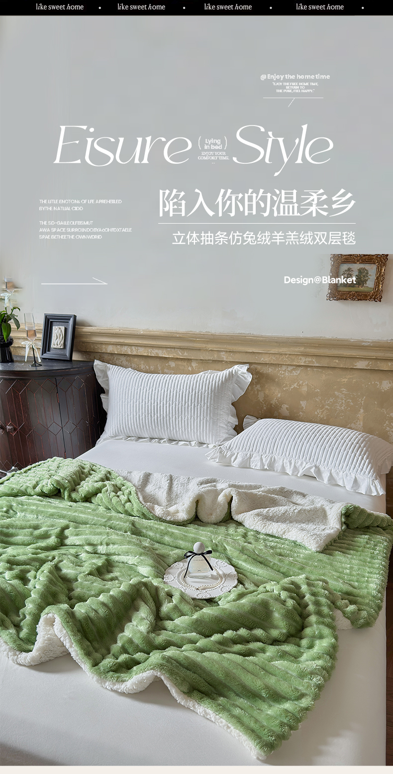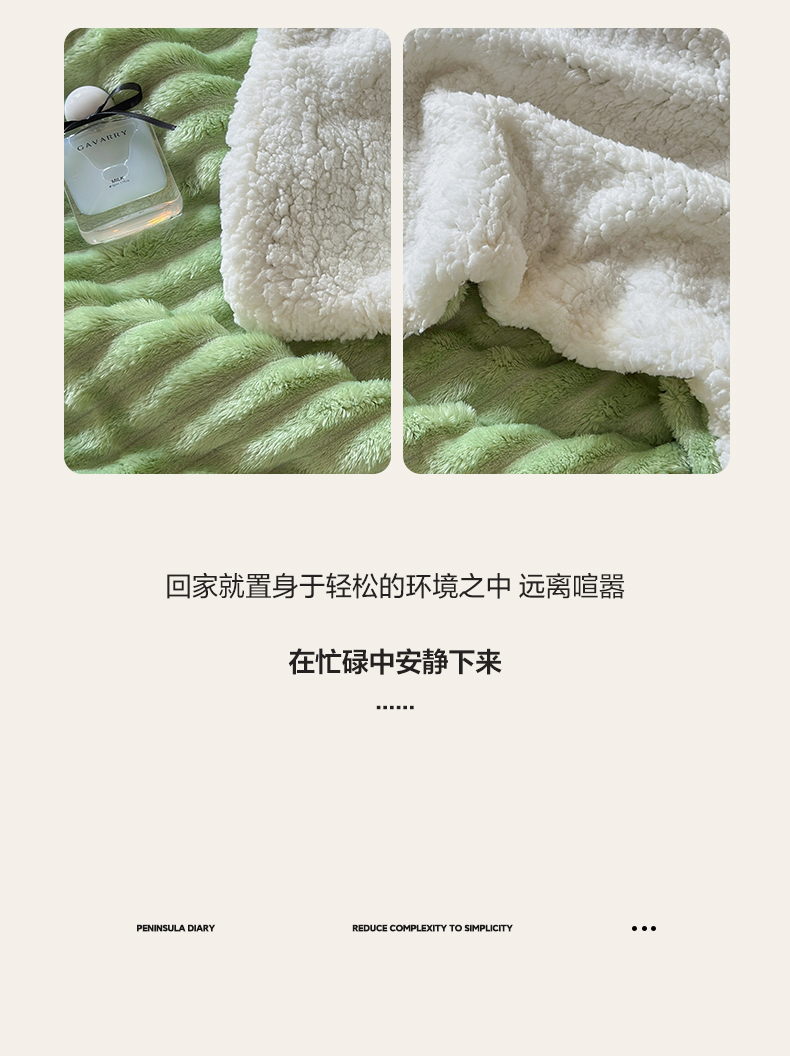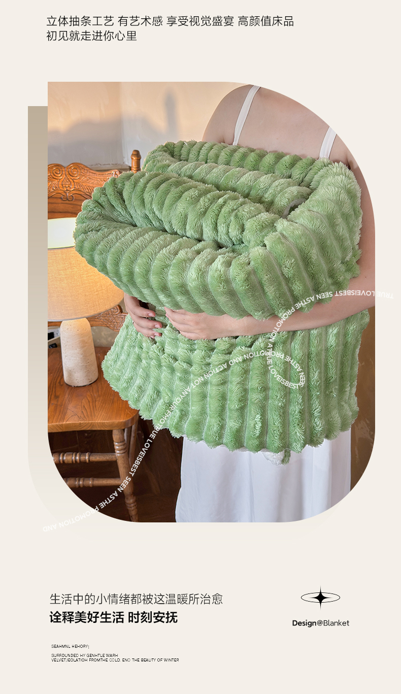 当前位置: 91家纺网 > 商品网购 > 毛毯休闲毯绒毯 > 毛毯 > 艾咪-Amy ntmy 2025新款立体抽条仿兔绒羊羔绒双层毯子 双层毯-春芽绿