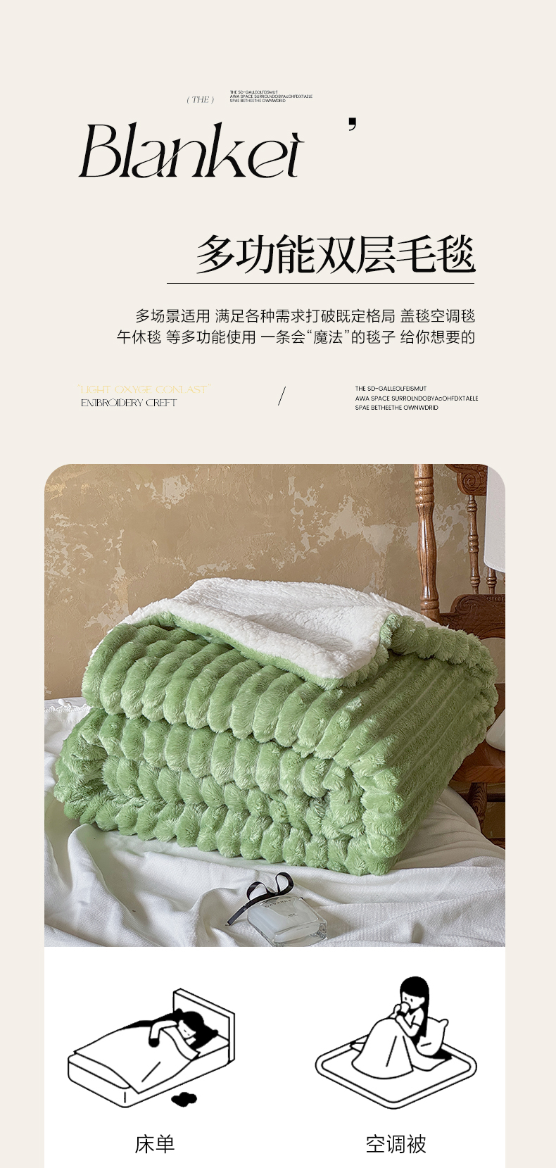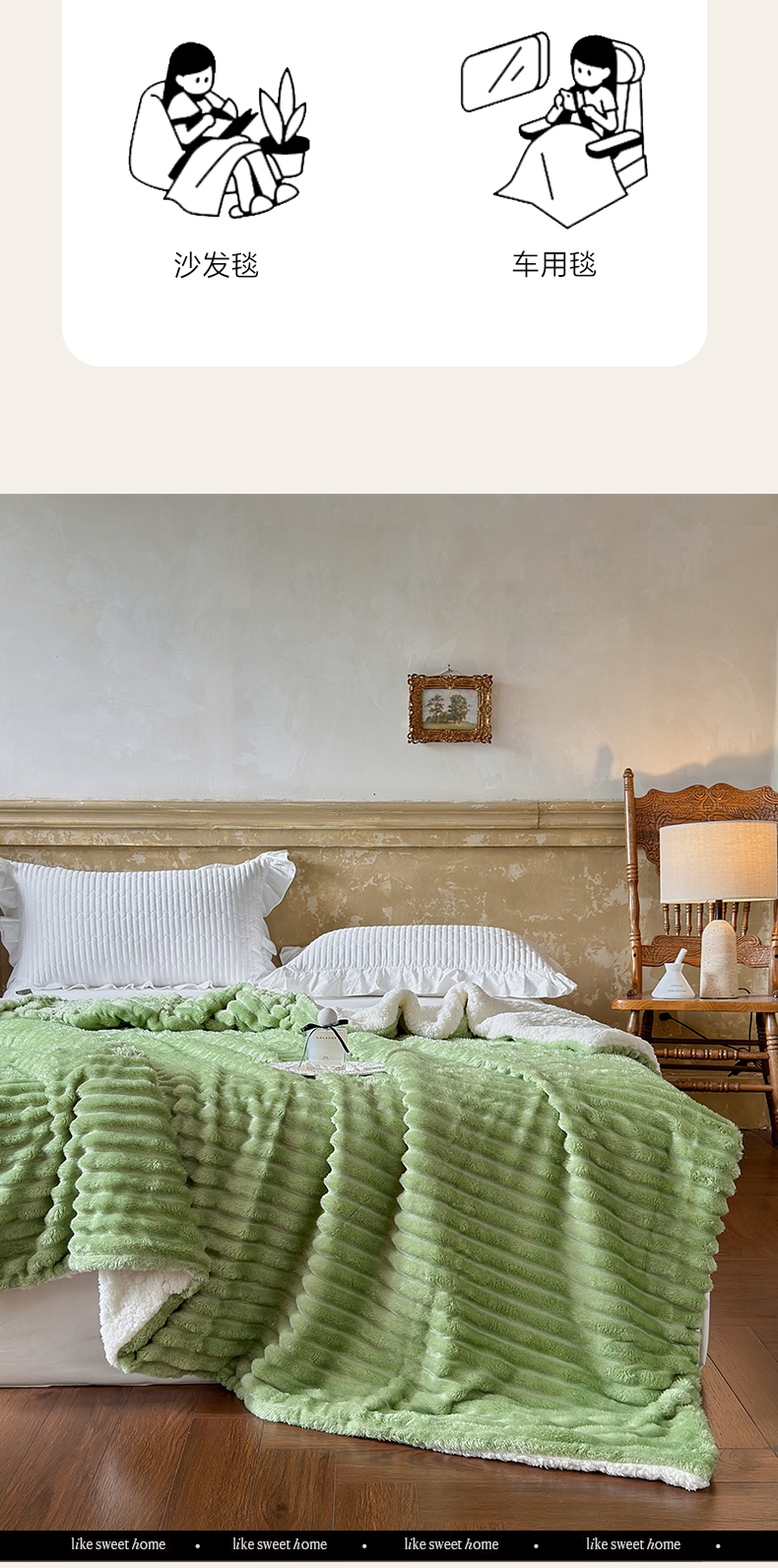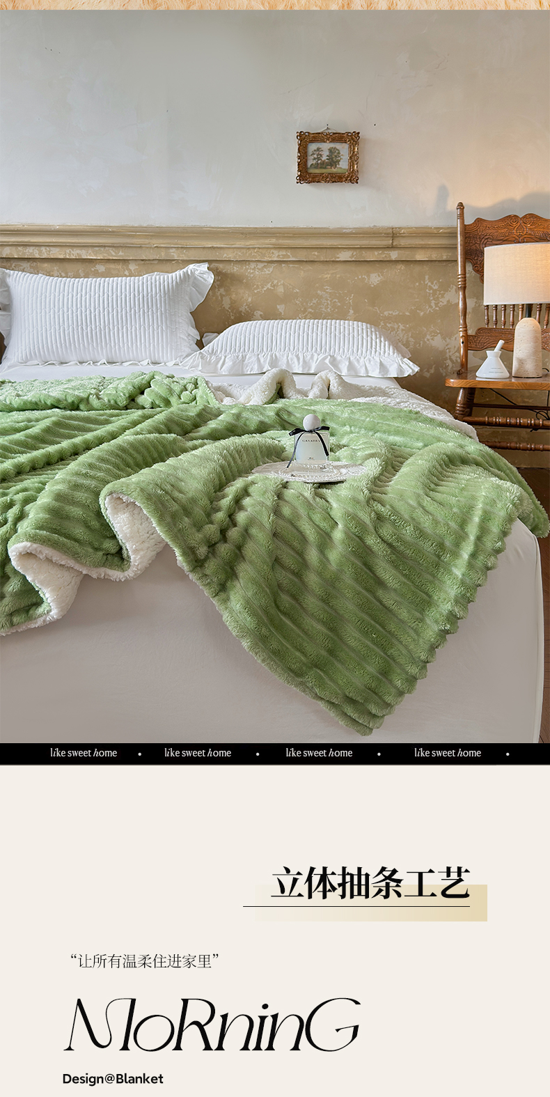 当前位置: 91家纺网 > 商品网购 > 毛毯休闲毯绒毯 > 毛毯 > 艾咪-Amy ntmy 2025新款立体抽条仿兔绒羊羔绒双层毯子 双层毯-春芽绿