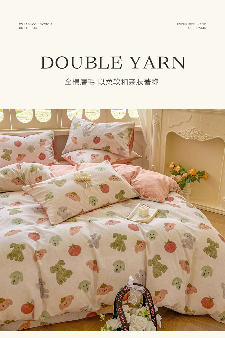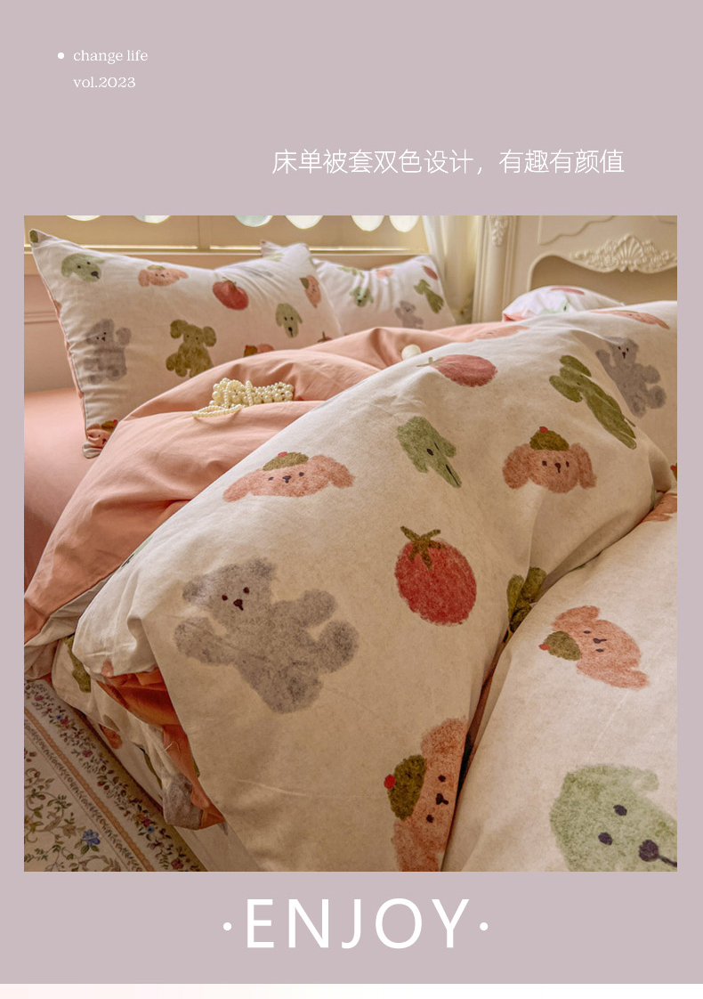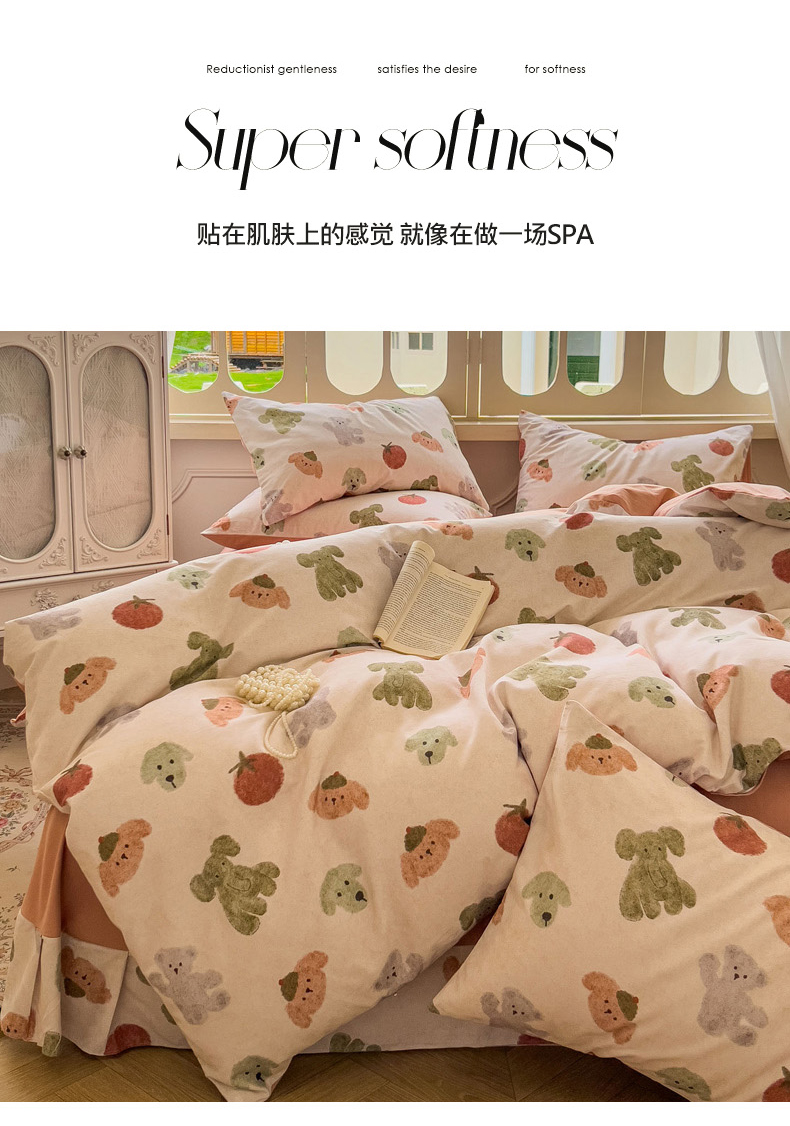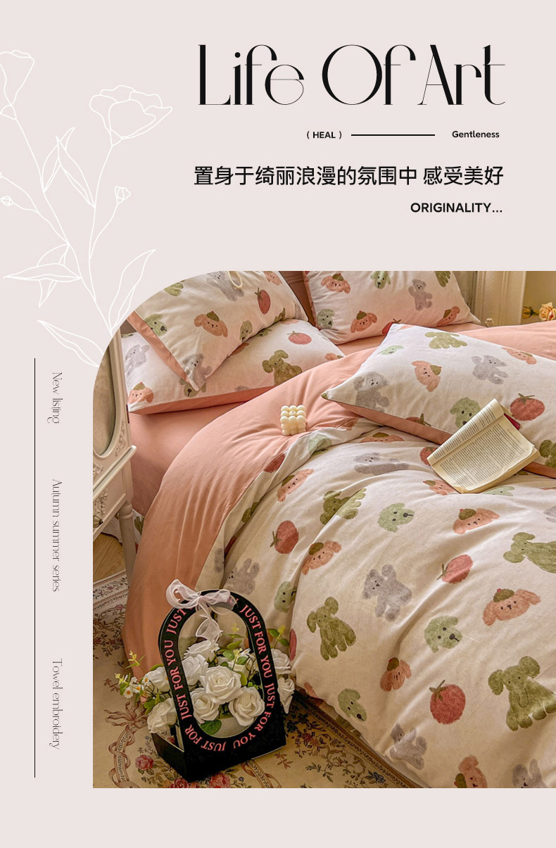 (总)田野 2023新款全棉A类贝壳边双层纱四件套,饼干熊,波波兔,呆萌熊,萌宠乐园,萌兔森林,甜心小兔,薇拉,小蘑菇,伊甜