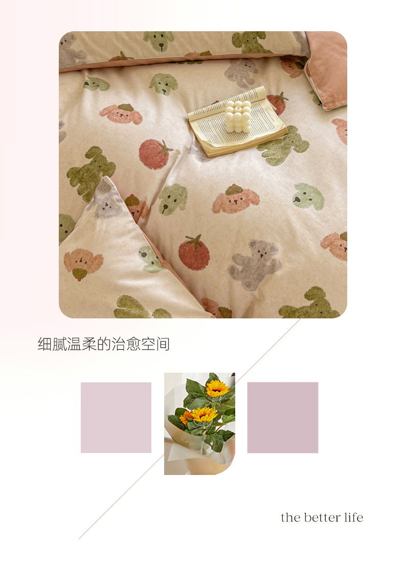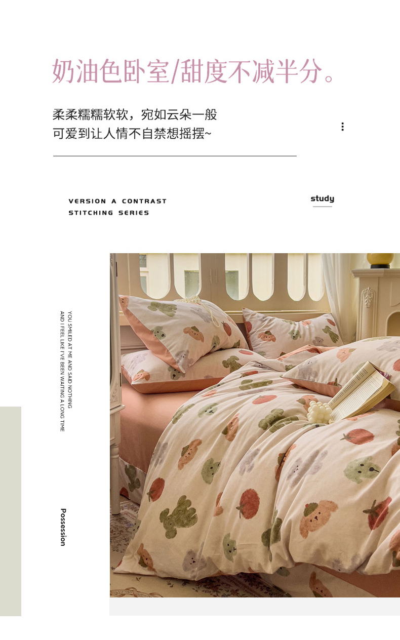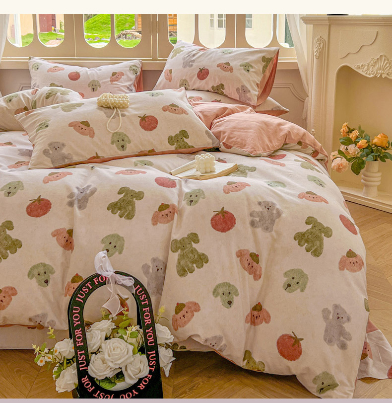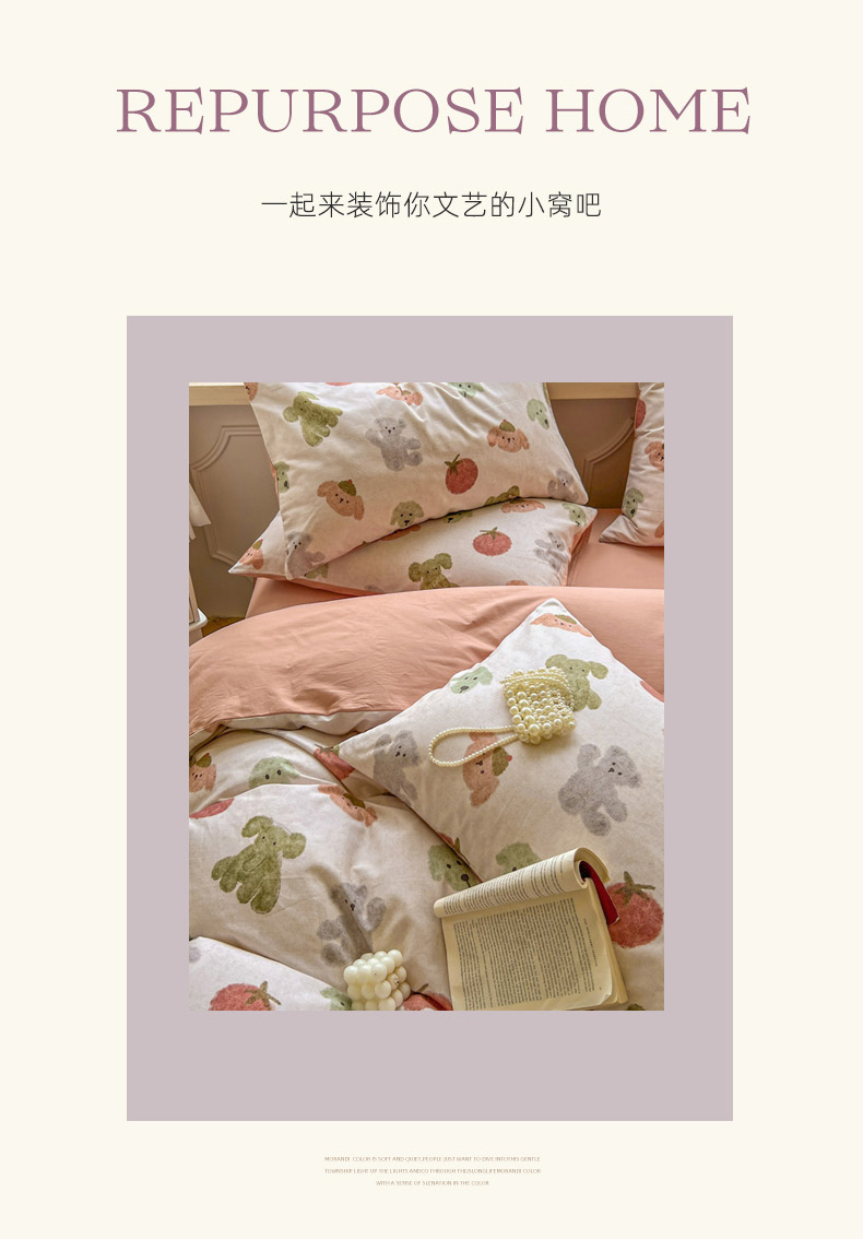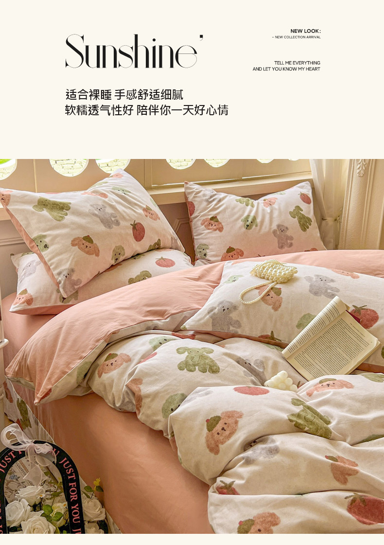 (总)田野 2023新款全棉A类贝壳边双层纱四件套,饼干熊,波波兔,呆萌熊,萌宠乐园,萌兔森林,甜心小兔,薇拉,小蘑菇,伊甜