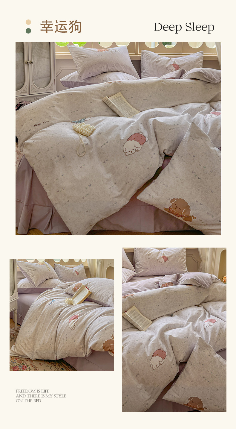 (总)田野 2025新款全棉水洗棉提花四件套,花田,花颜,帽子狗,蘑菇,飘带,泰迪狗,小树林-咖,小象,小雨点,樱桃-绿