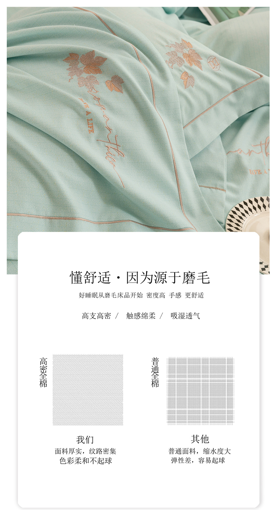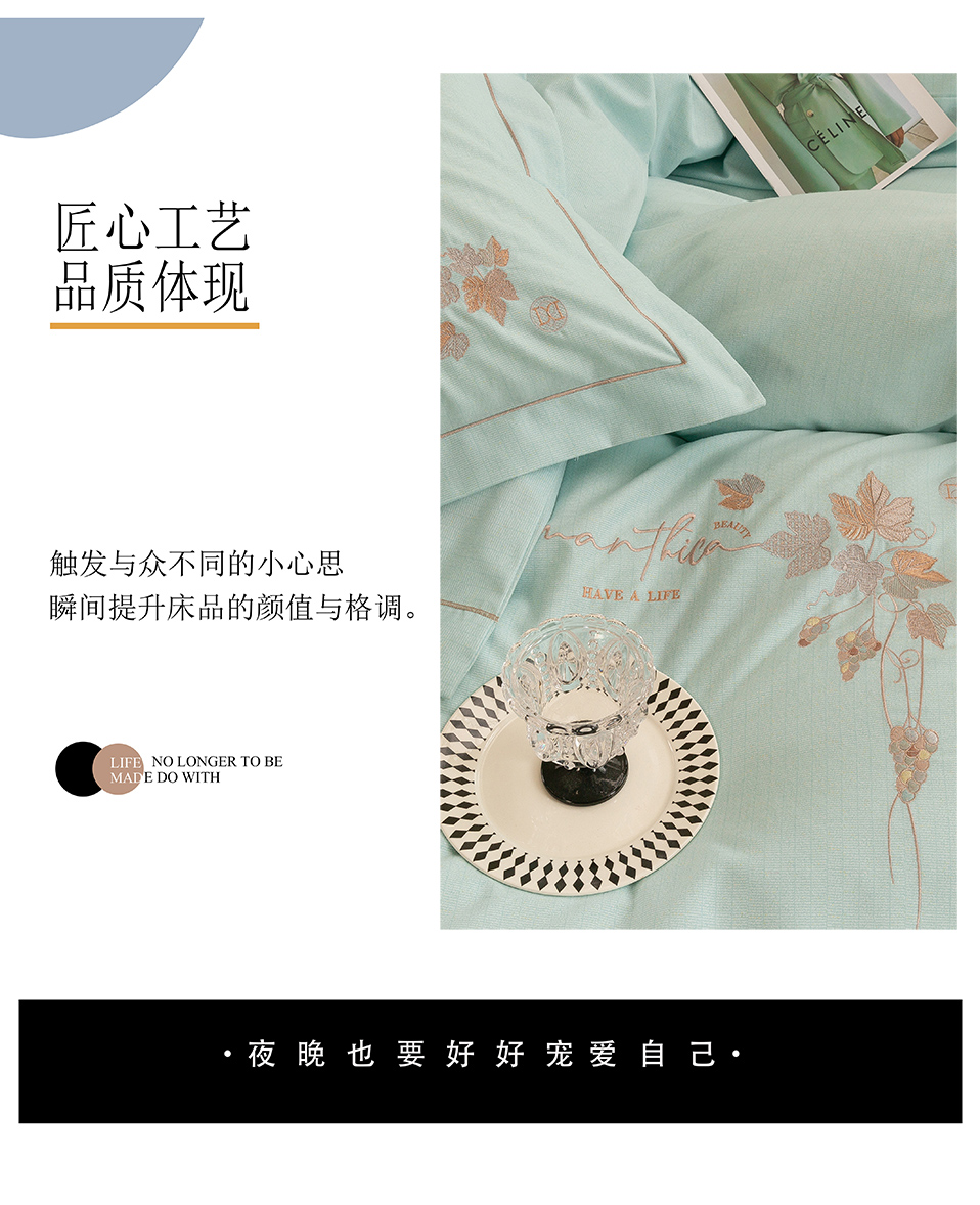 商品名称:绒博士 2025新款全棉磨毛绣花宽边款四件套--梦恬系列 梦恬-玉色