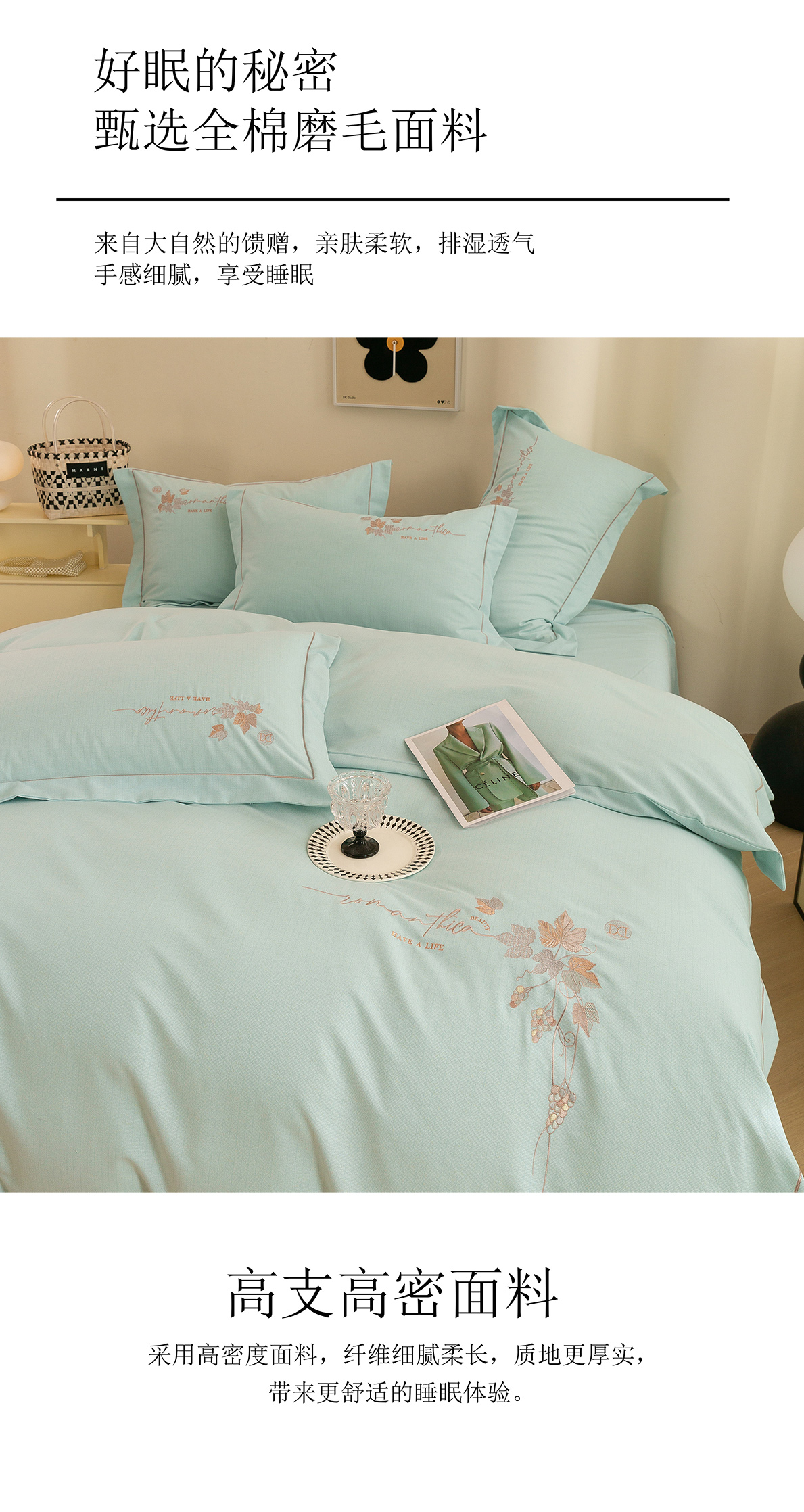 (总)绒博士 2025新款270克牛奶绒双拼角刺绣宽边款四件套--维也纳系列,维也纳-粉豆沙,维也纳-果绿,维也纳-浅咖,维也纳-浅蓝