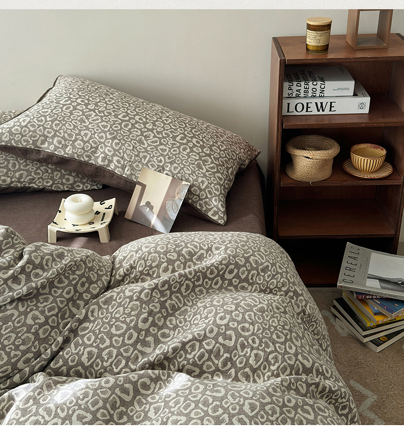 水洗的故事(原有乐家) 2025新款秋冬60s全棉贡缎色织大提花四件套 豹纹-咖
