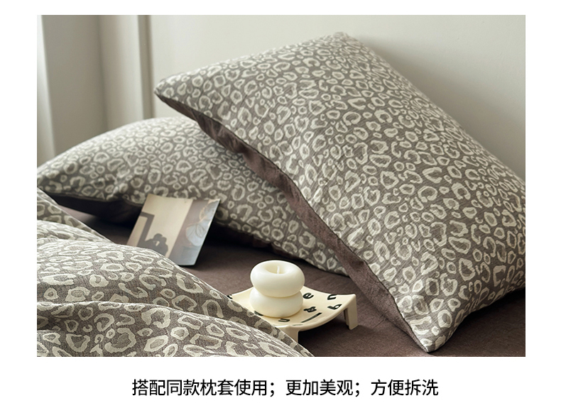 商品名称:水洗的故事(原有乐家) 2025新款秋冬60s全棉贡缎色织大提花四件套 豹纹-咖