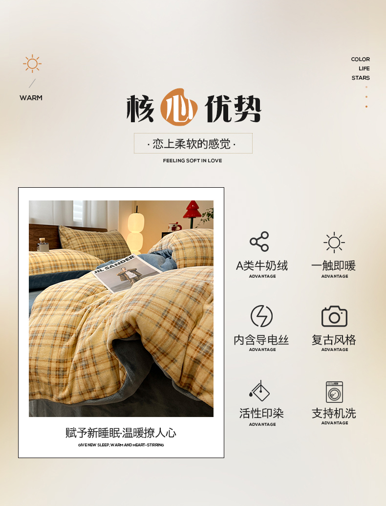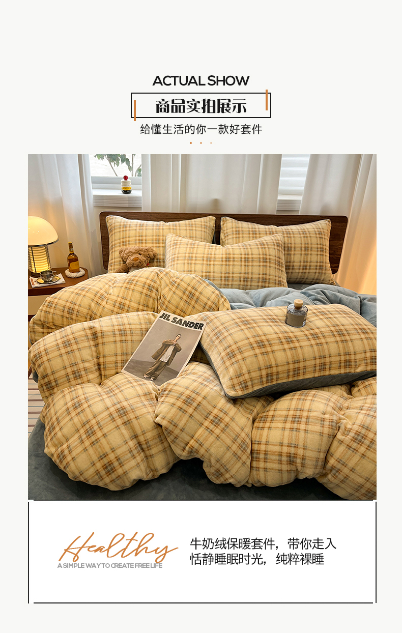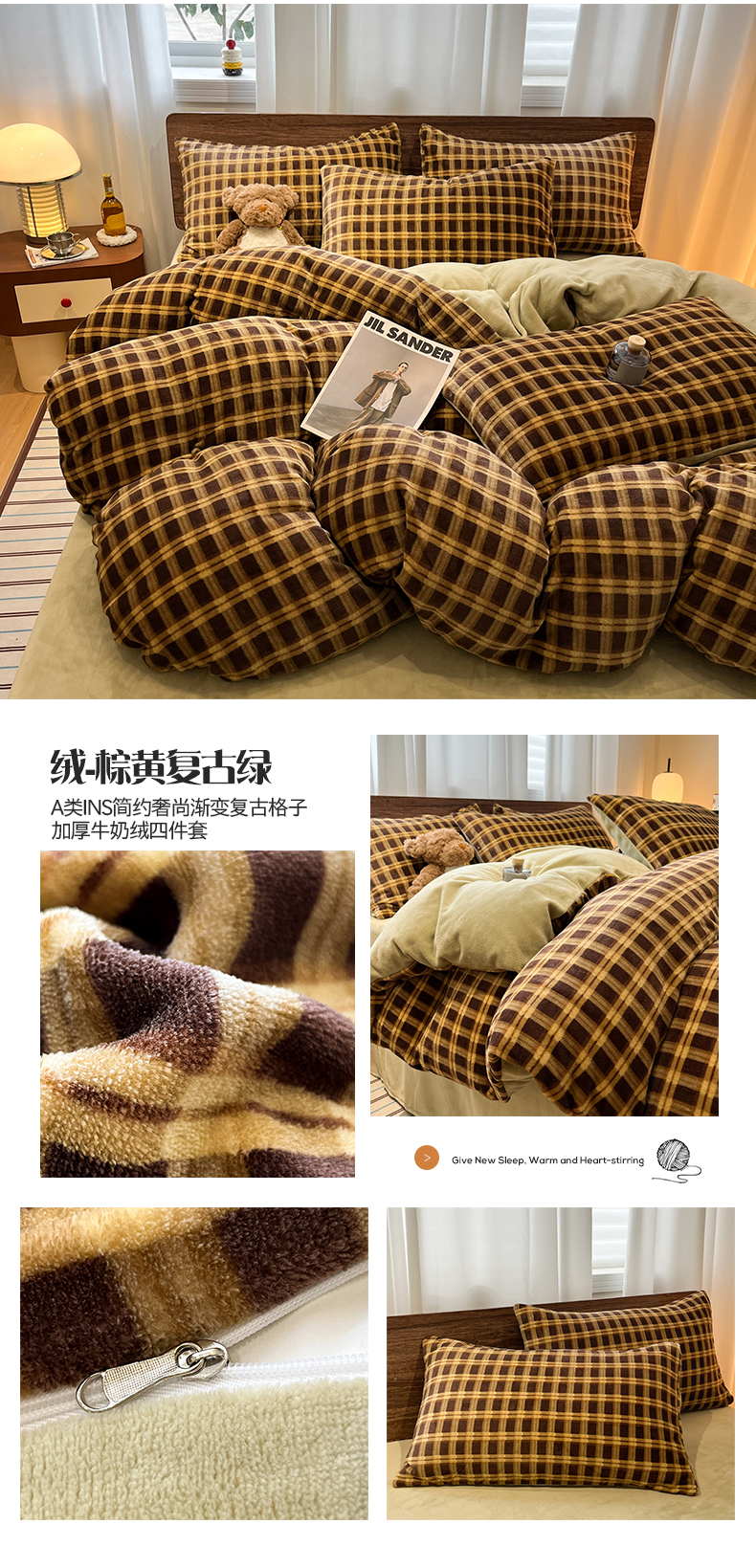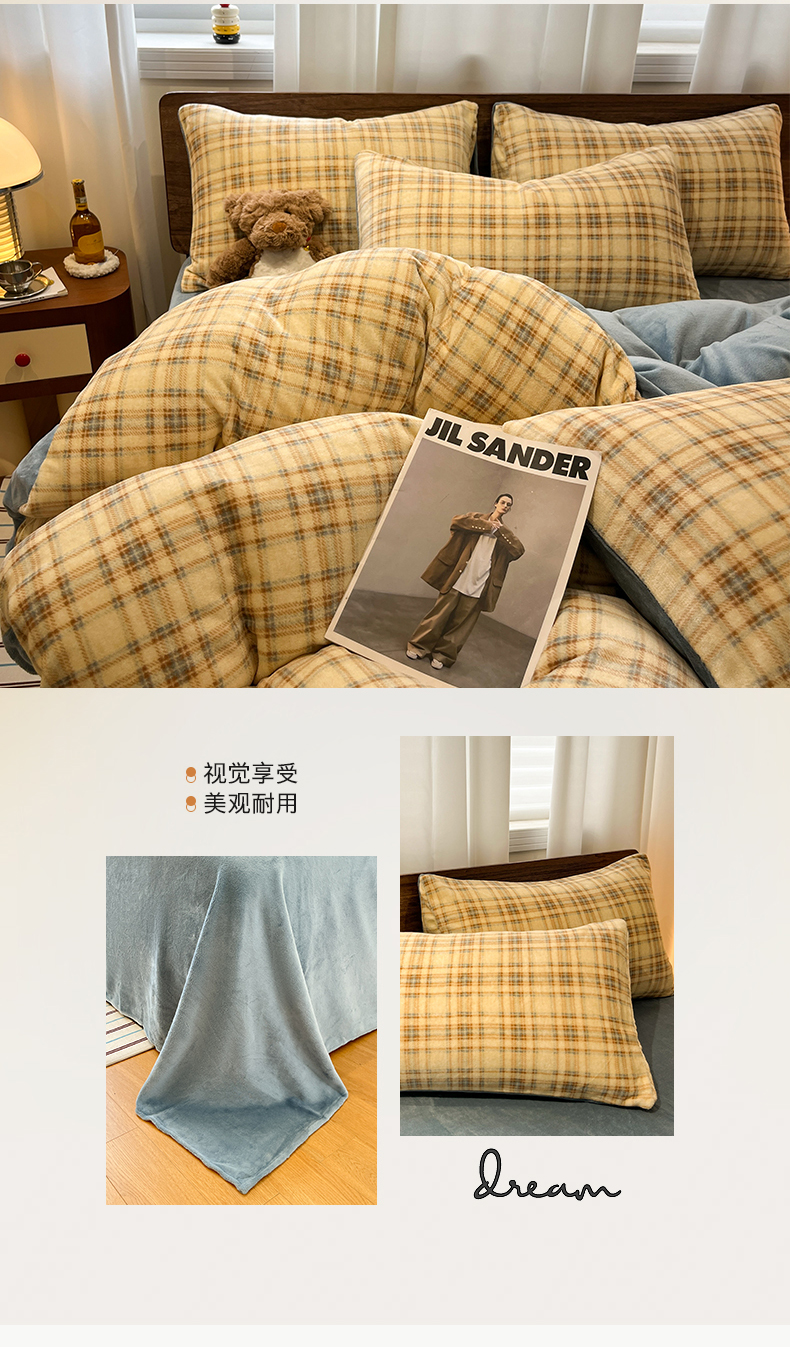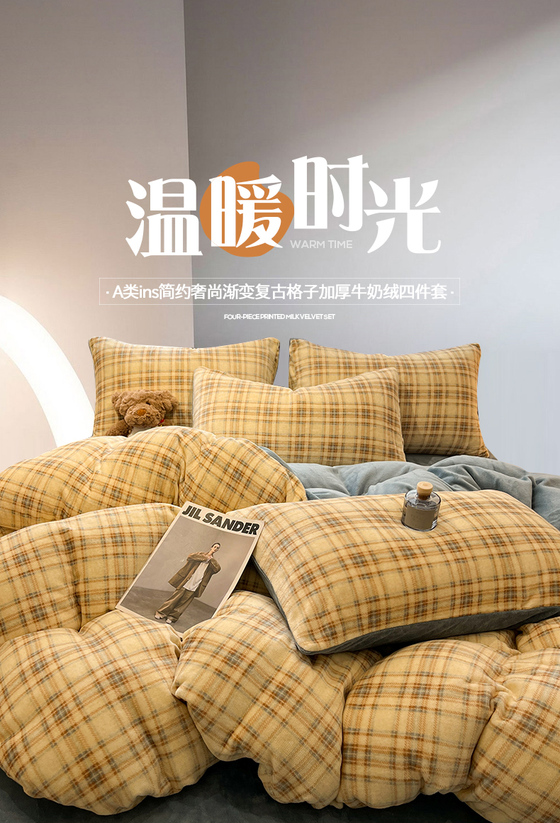 当前位置: 91家纺网 > 商品网购 > 床品套件 > 四件套 > 牛奶绒四件套 > 桃子家居 2025新款A类ins简约奢尚渐变复古格子加厚牛奶绒四件套 绒-中古奶咖格蓝