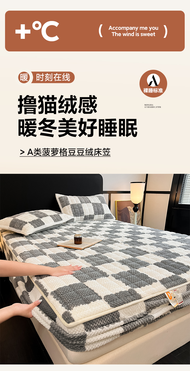 商品名称:(总)欧邦 2025新款加厚菠萝格豆豆绒夹棉床笠 床笠单件