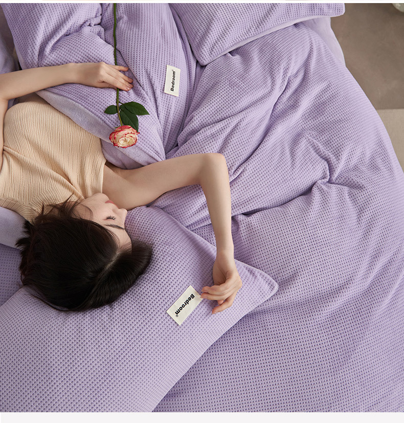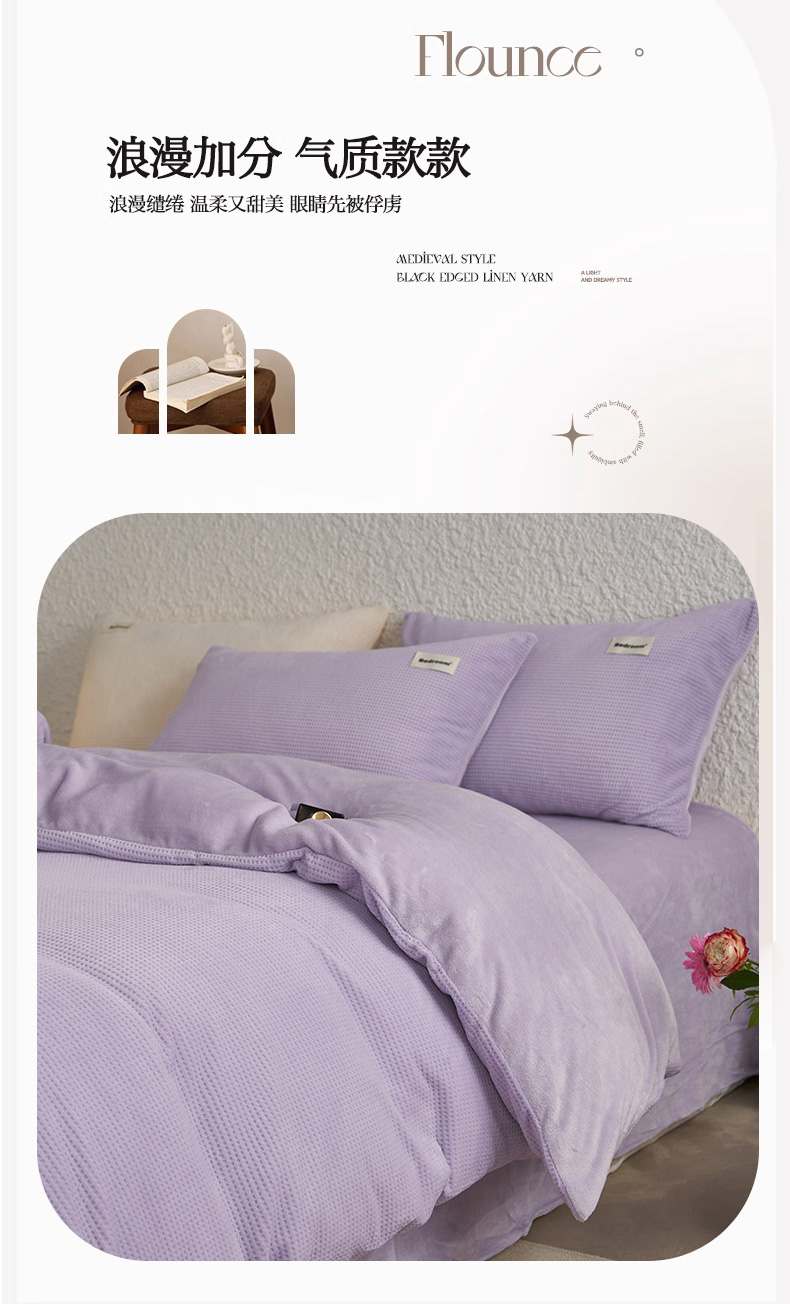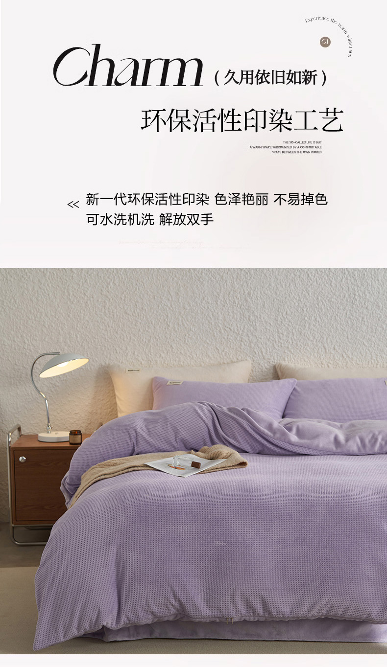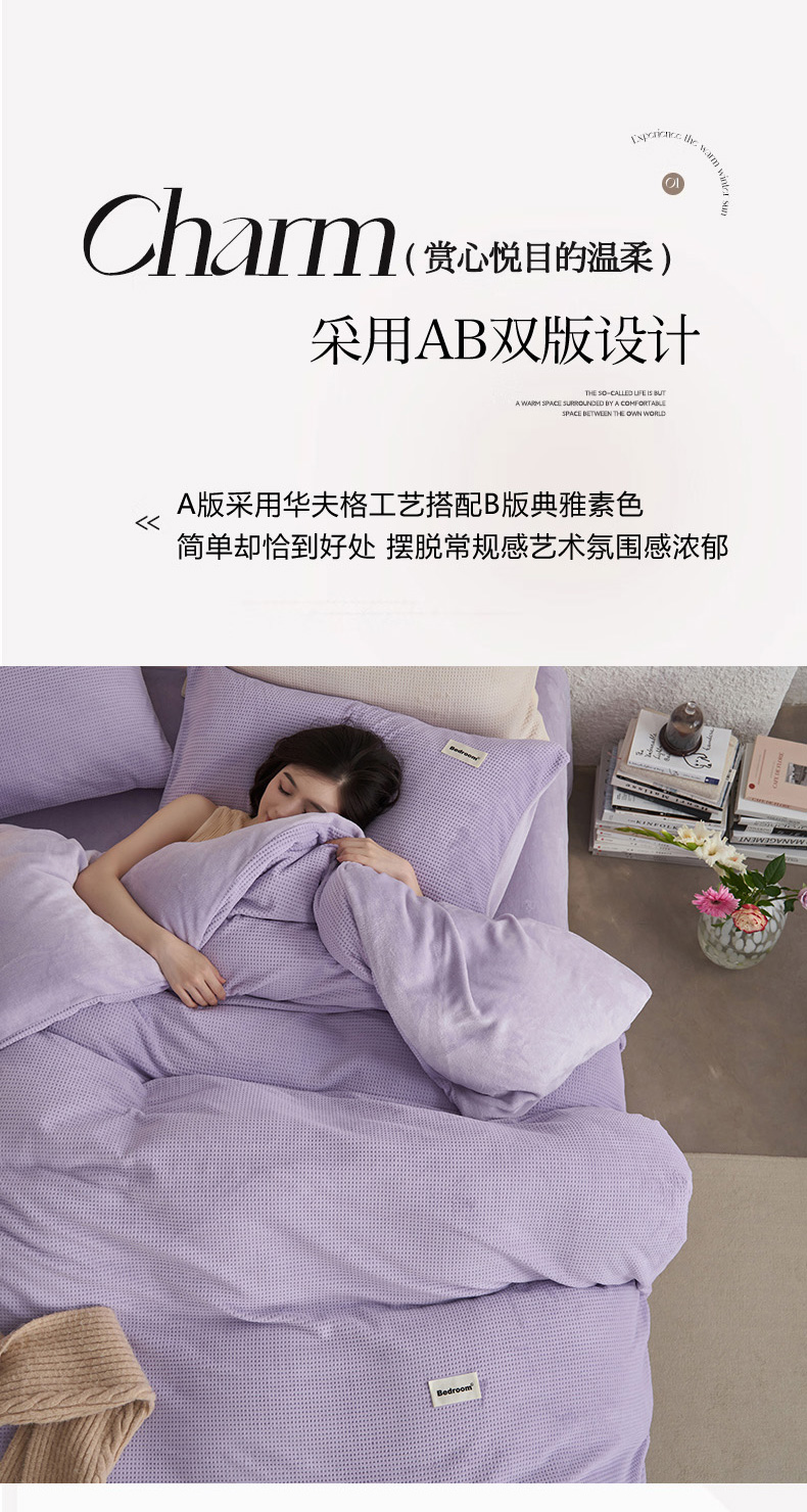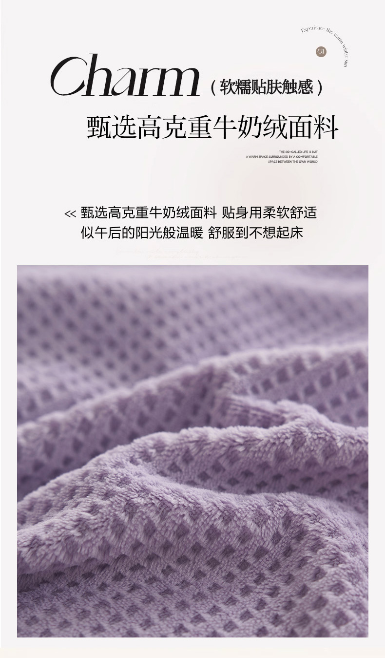 当前位置: 91家纺网 > 商品网购 > 床品套件 > 四件套 > 华夫格四件套 > 眠博士 2025新款华夫格剪花牛奶绒加厚保暖四件套 华夫格剪花-丁香紫