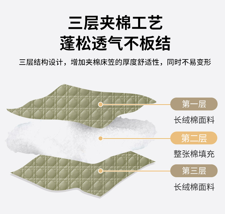(总)2025A类母婴级长绒棉夹棉床笠三件套纯棉全棉加厚席梦思床罩床套四季款保护罩,茶绿,黛紫,慕蓝,奶玉,颜粉