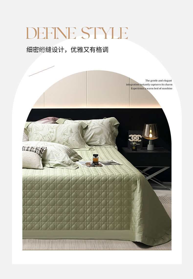 商品名称:2025新款高端A类长绒棉夹棉床盖床笠四件套全棉纯棉纯色绗绣四季款保护罩高级感床上用品 时漫-叶繁绿