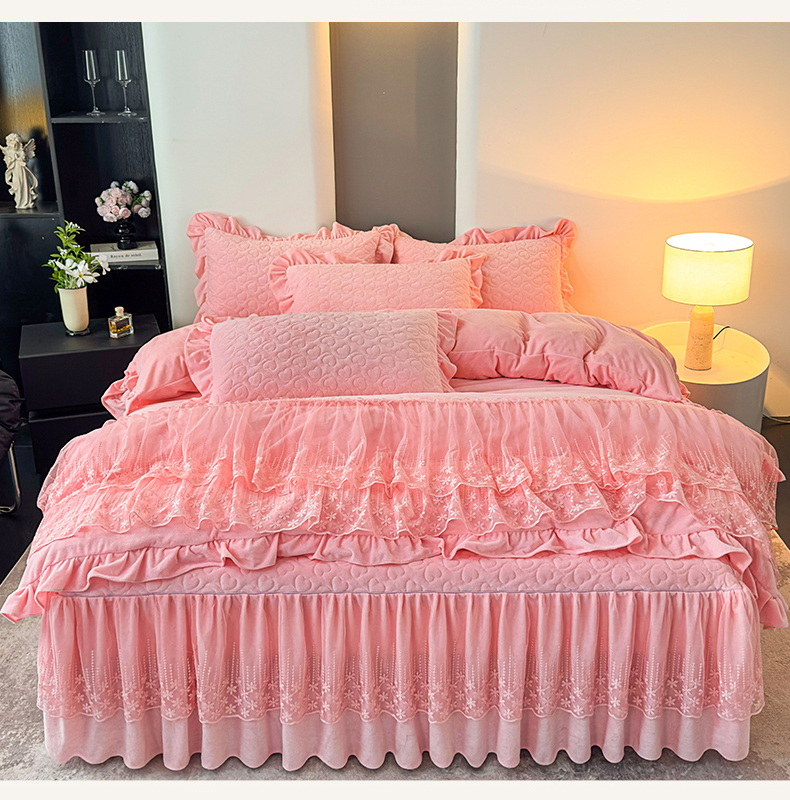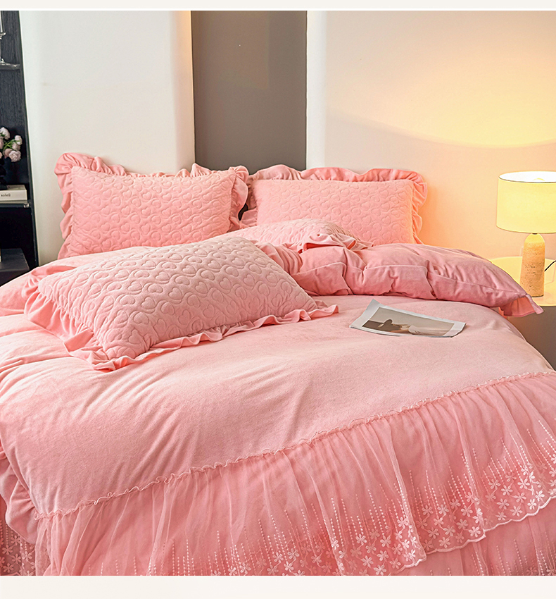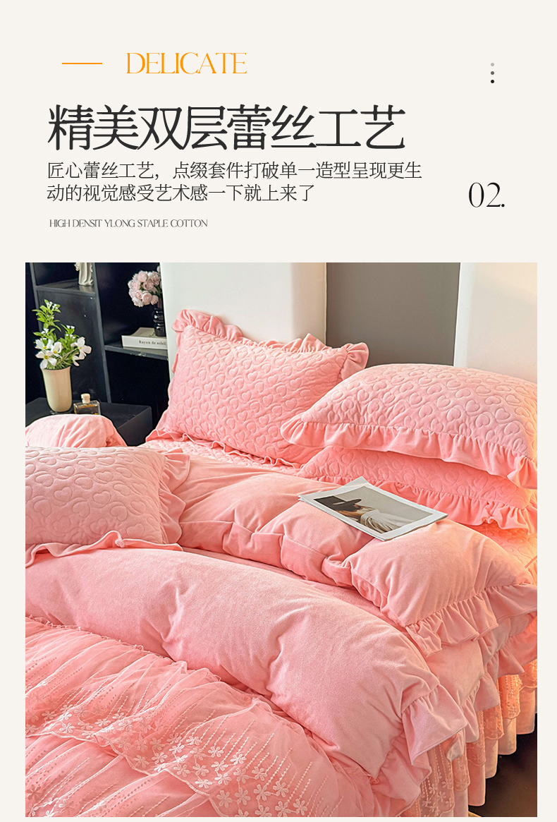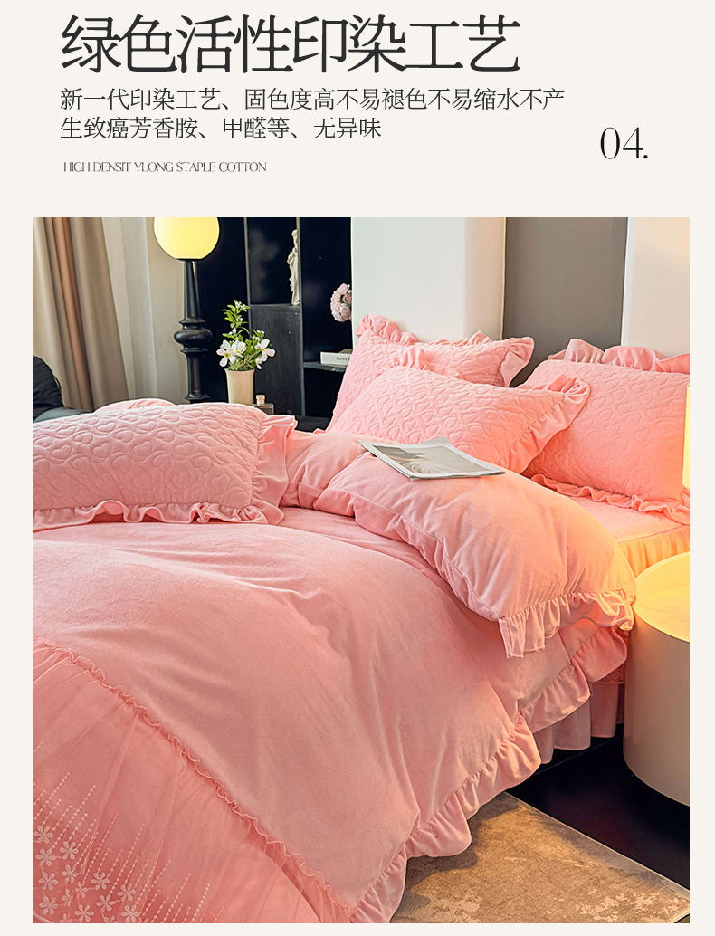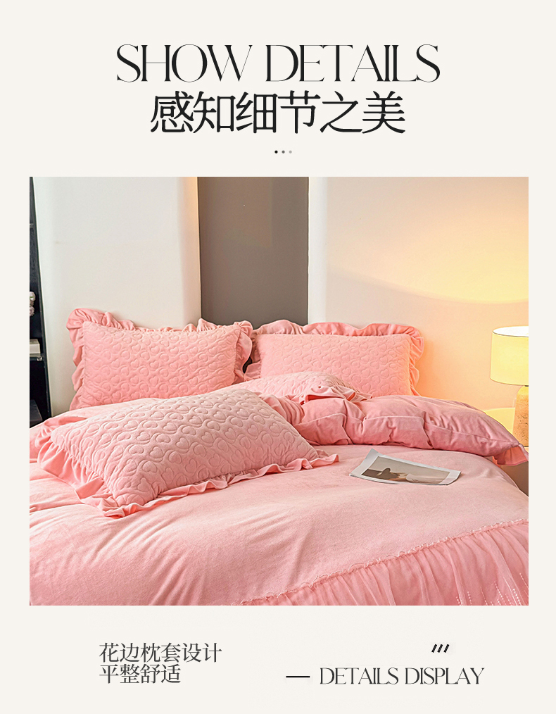 当前位置: 91家纺网 > 商品网购 > 床品套件 > 四件套 > 其它四件套 > 恒爱家纺 2025新款宝宝绒紫陌听雪床裙款四件套终版 贵妃粉