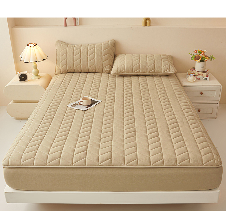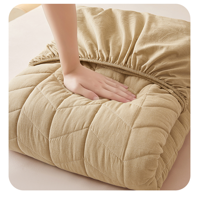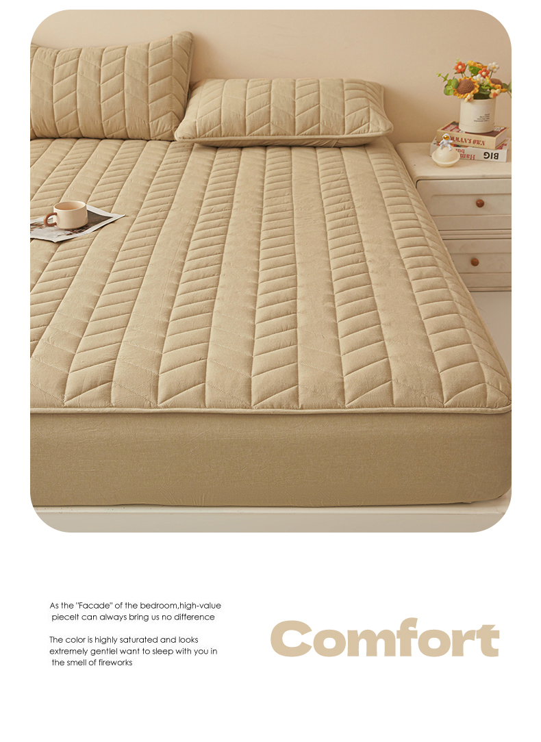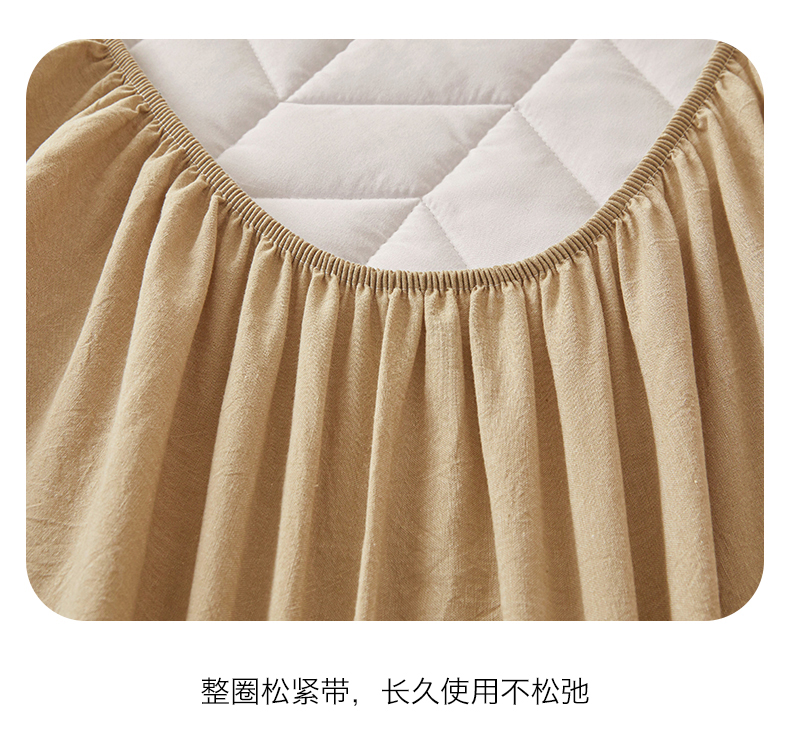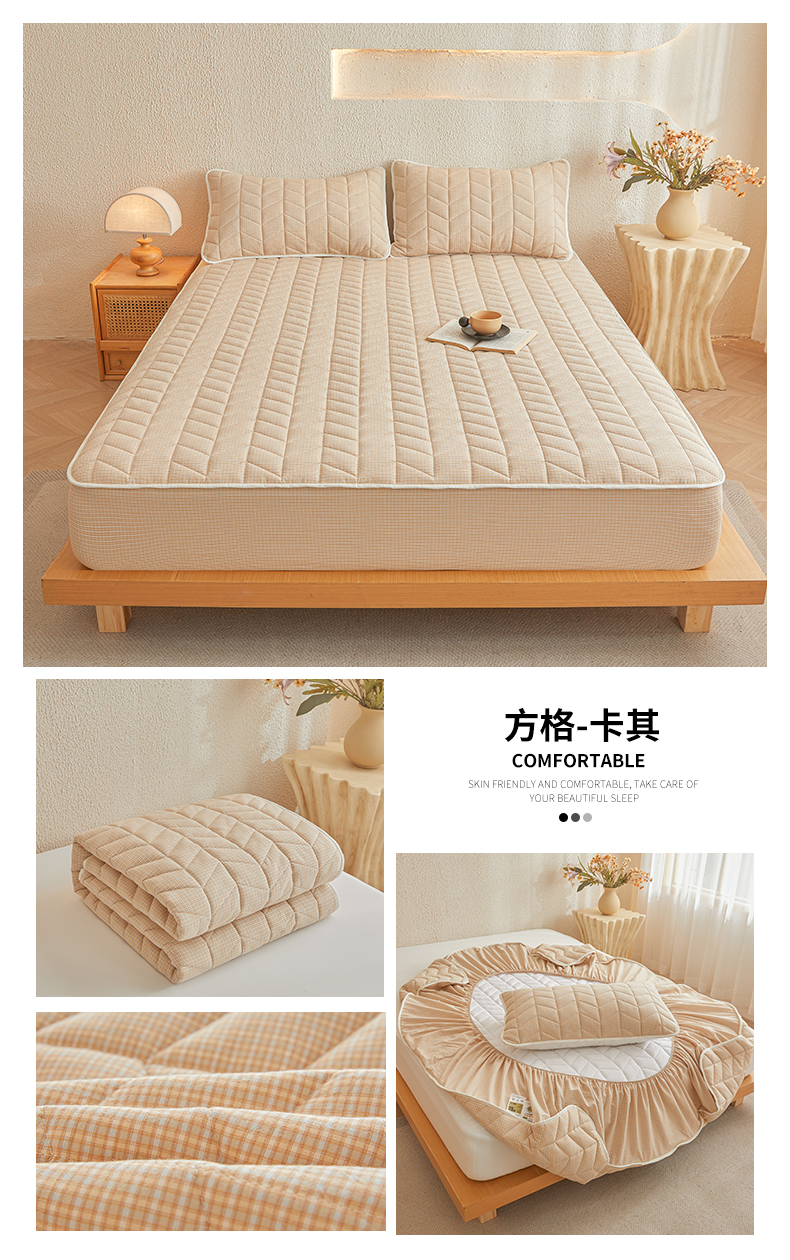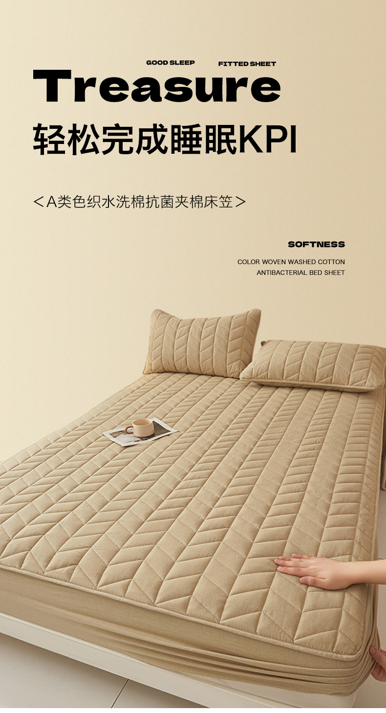 优眠坊 2025新品全棉色织水洗棉纯棉夹棉抗菌绗缝床笠-幻格系列 幻格-卡其