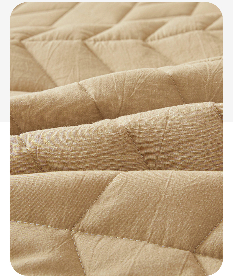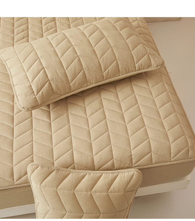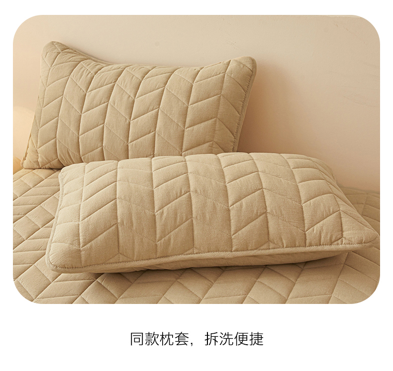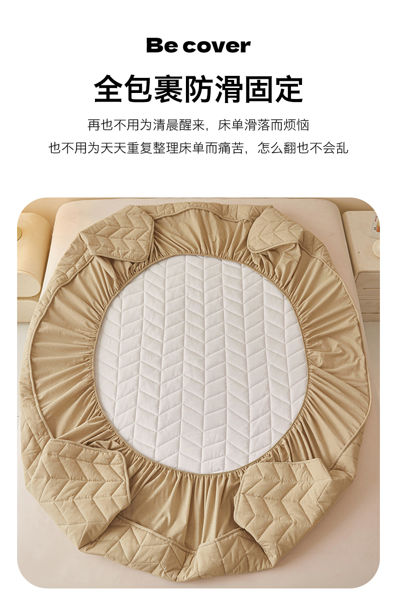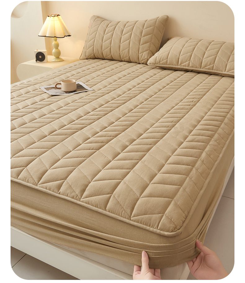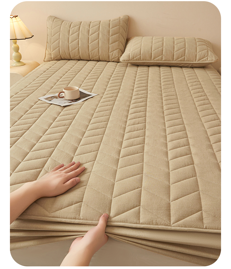 优眠坊 2025新品全棉色织水洗棉纯棉夹棉抗菌绗缝床笠-幻格系列 幻格-卡其