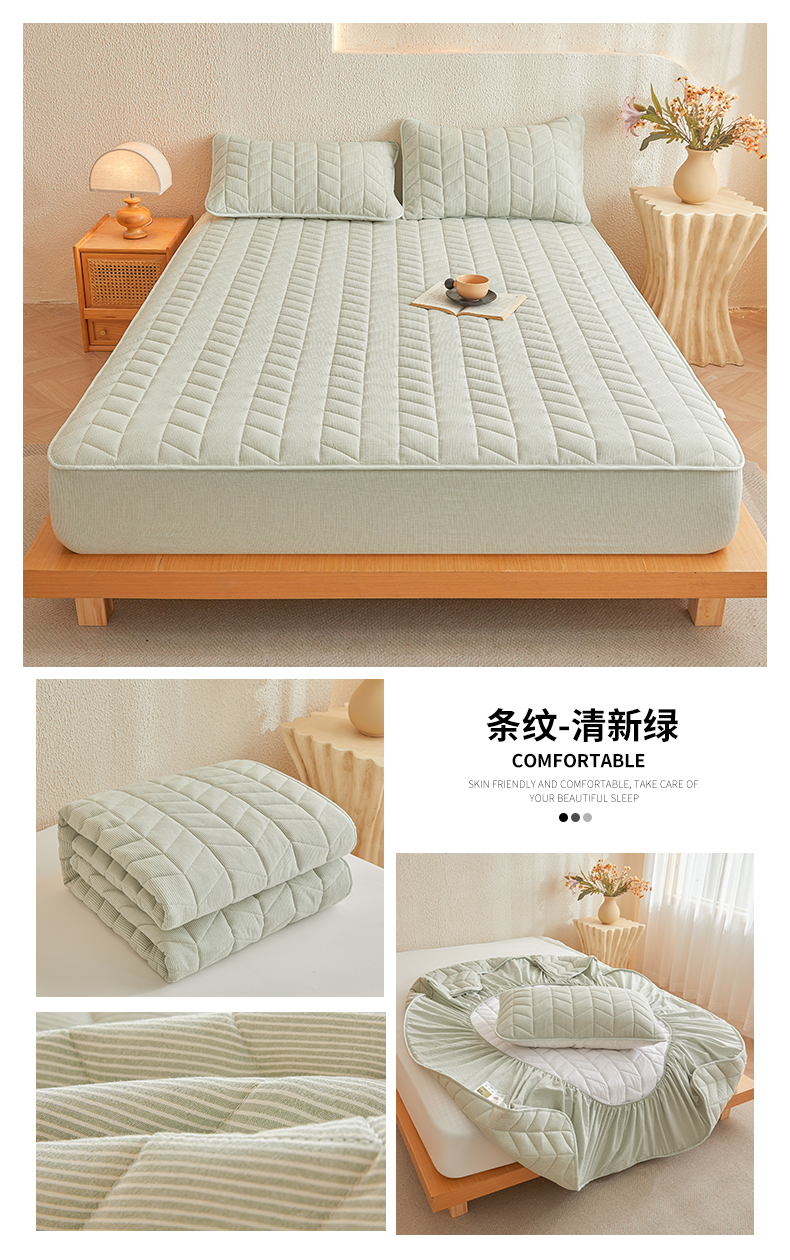 (总)优眠坊 2025新品日式无印风全棉色织水洗棉夹棉加厚抗菌纤维绗缝床笠,方格-卡其,方格-抹茶绿,方格-玉色,条纹-灰,条纹-卡其,条纹-清新绿,条纹-玉色