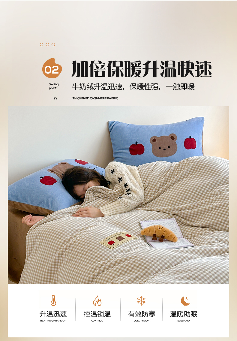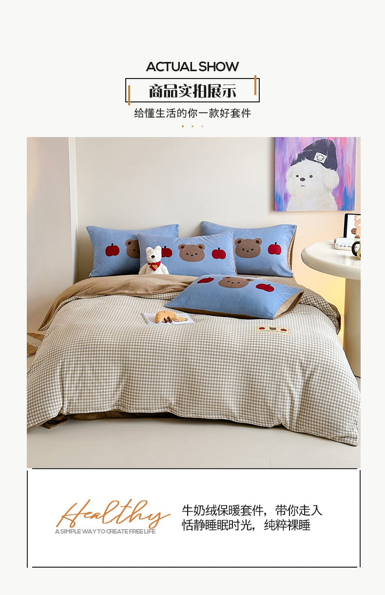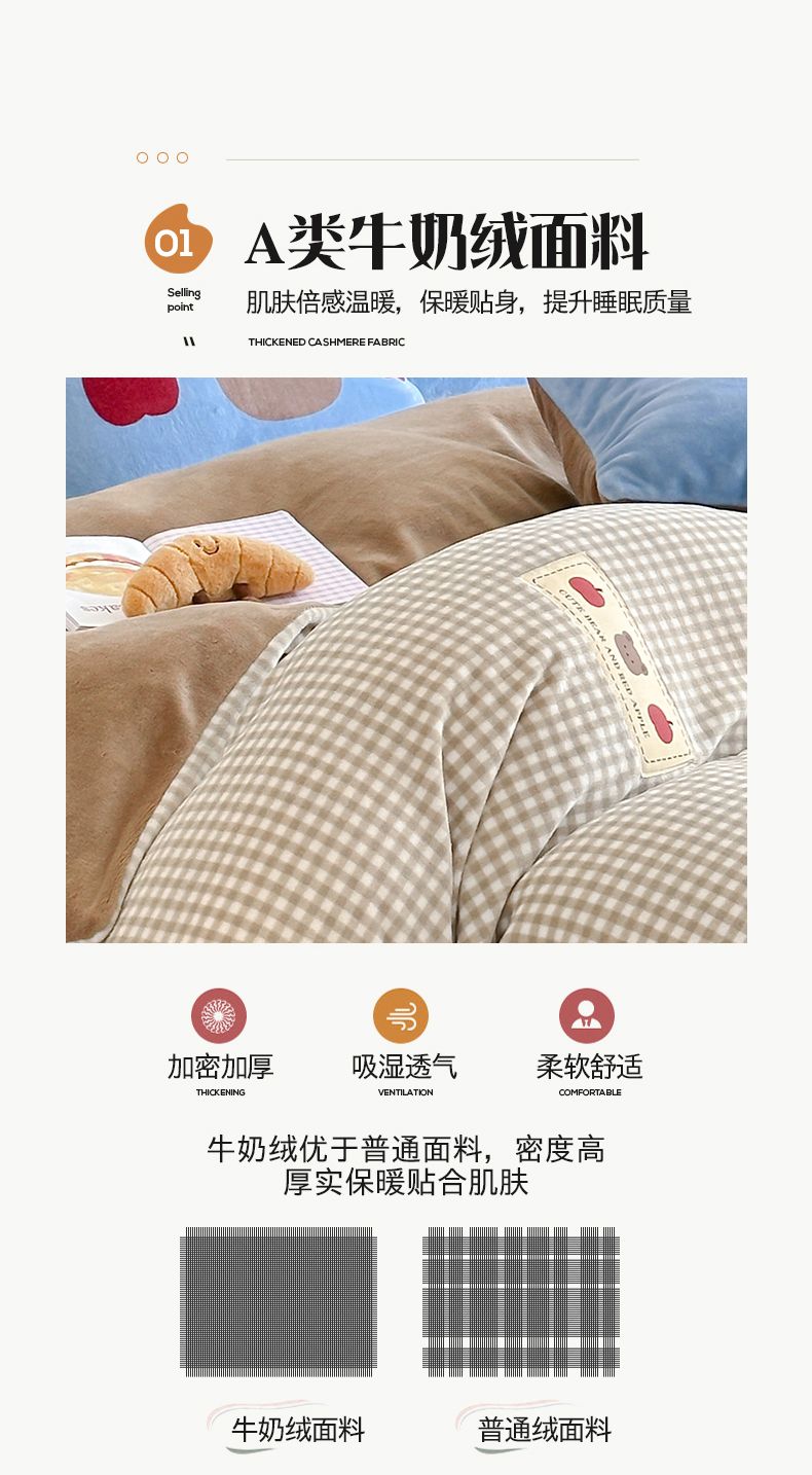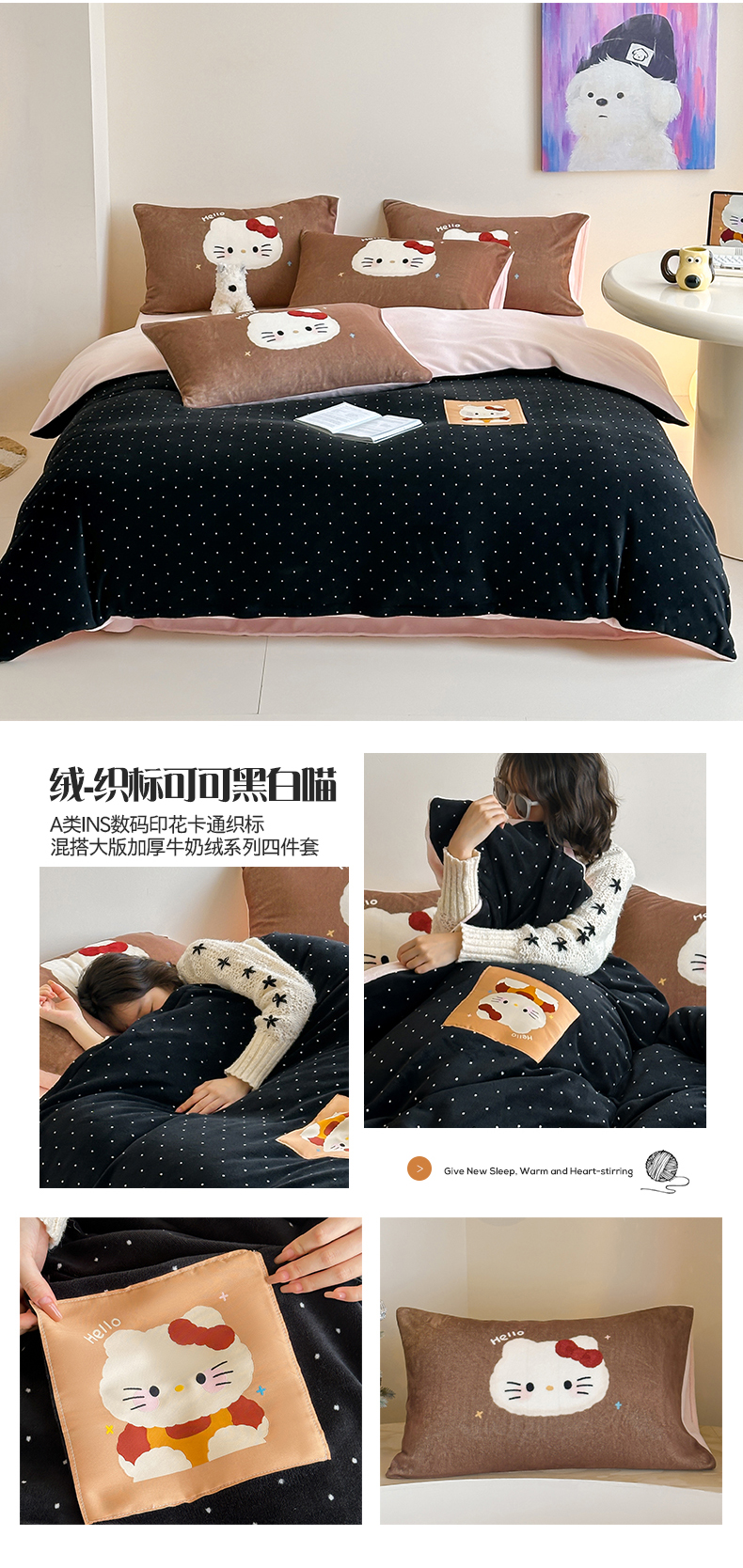 商品名称:(总)桃子家居 2025新款A类ins数码印花卡通织标混搭大版加厚牛奶绒系列四件套