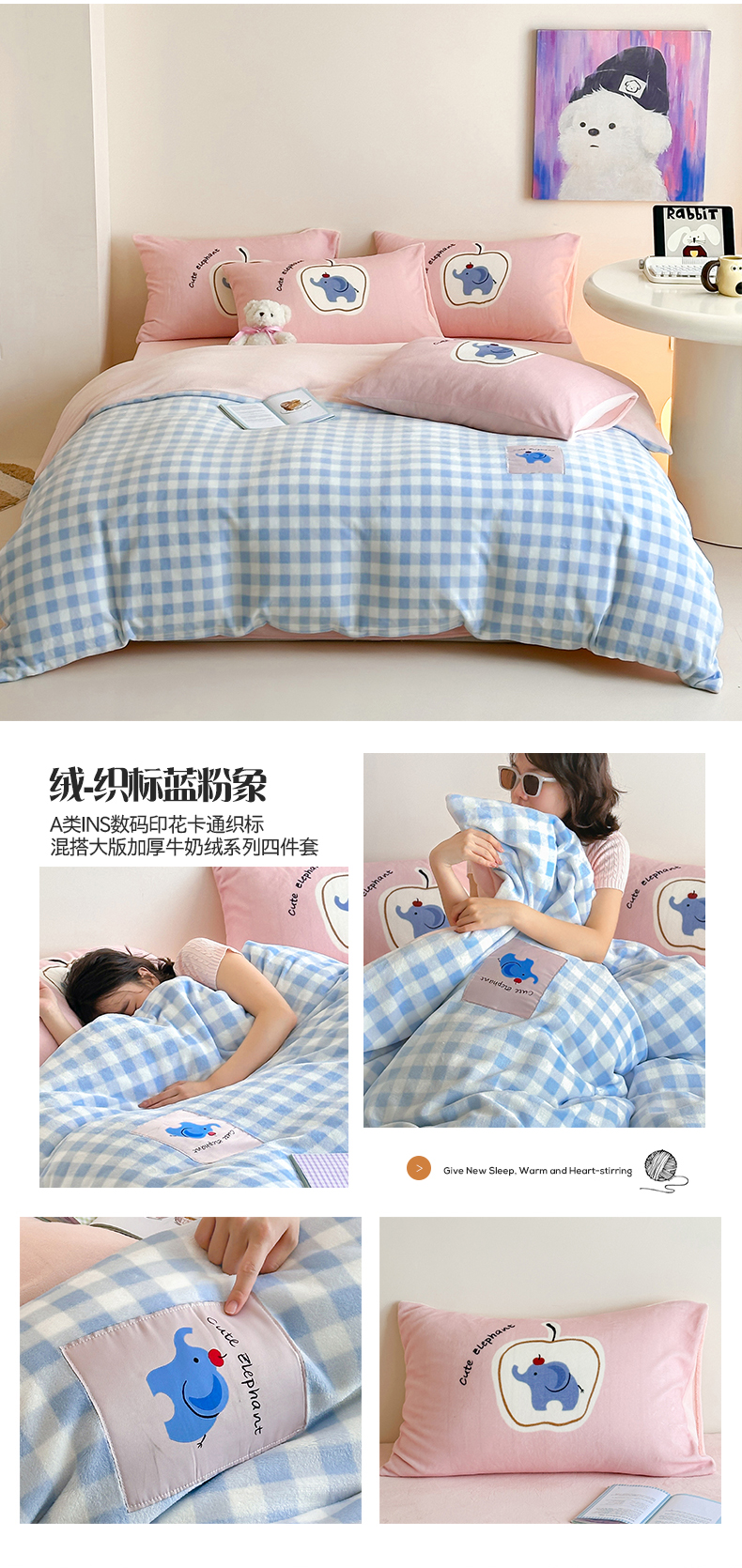 (总)桃子家居 2025新款A类ins数码印花卡通织标混搭大版加厚牛奶绒系列四件套