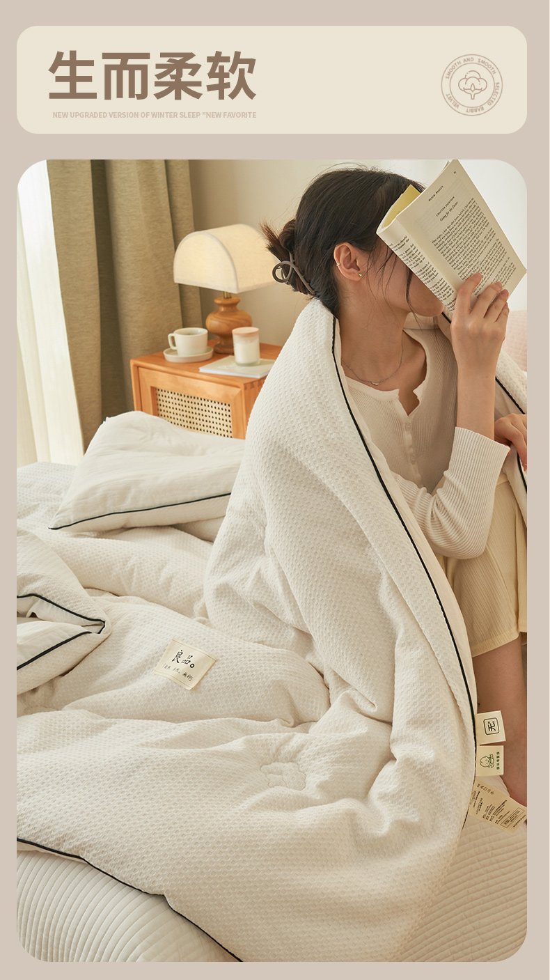 • 91家纺网 家纺一手货源 找家纺 子由家居 2025新款纯棉华夫格100%新疆棉花冬被被子被芯【里外纯棉】 华夫格棉花被-本白