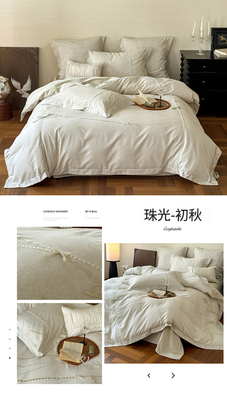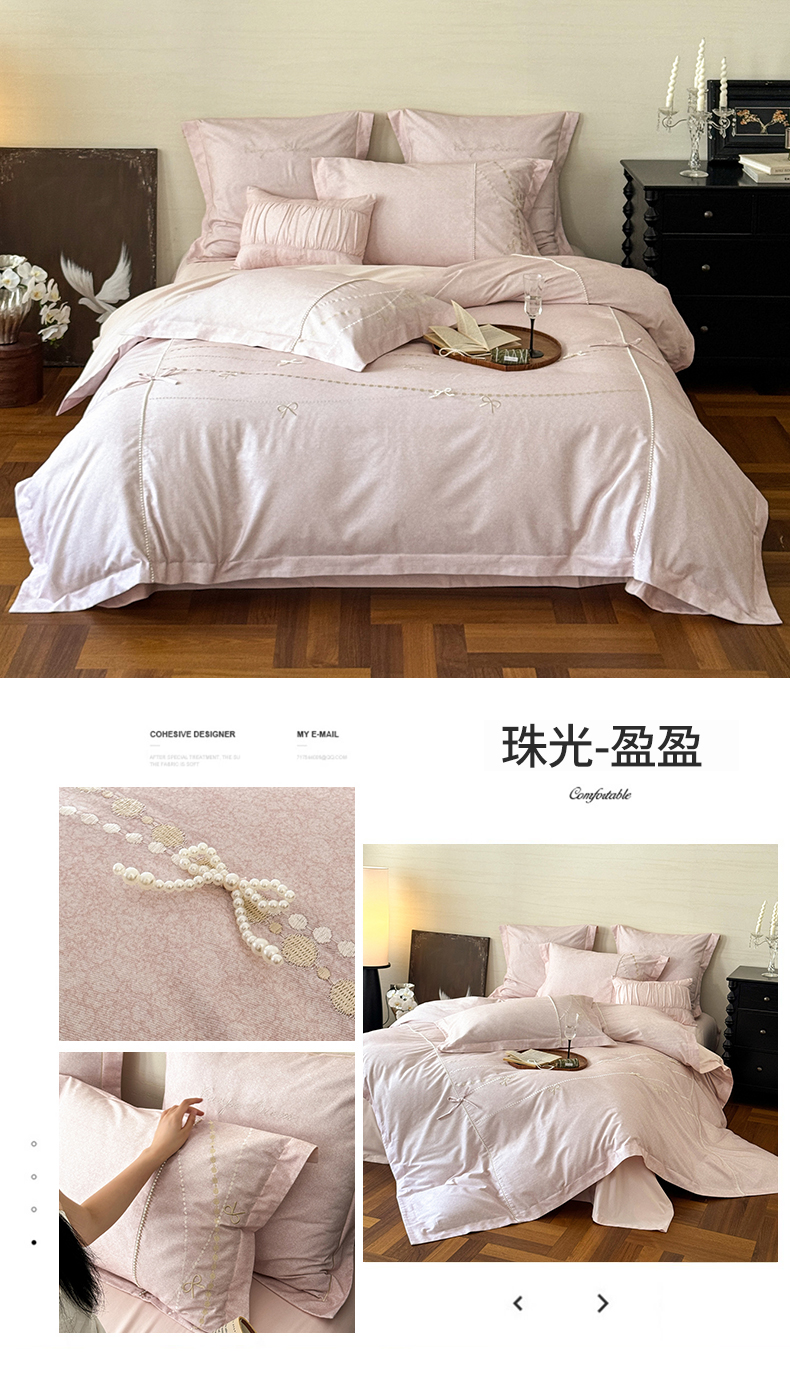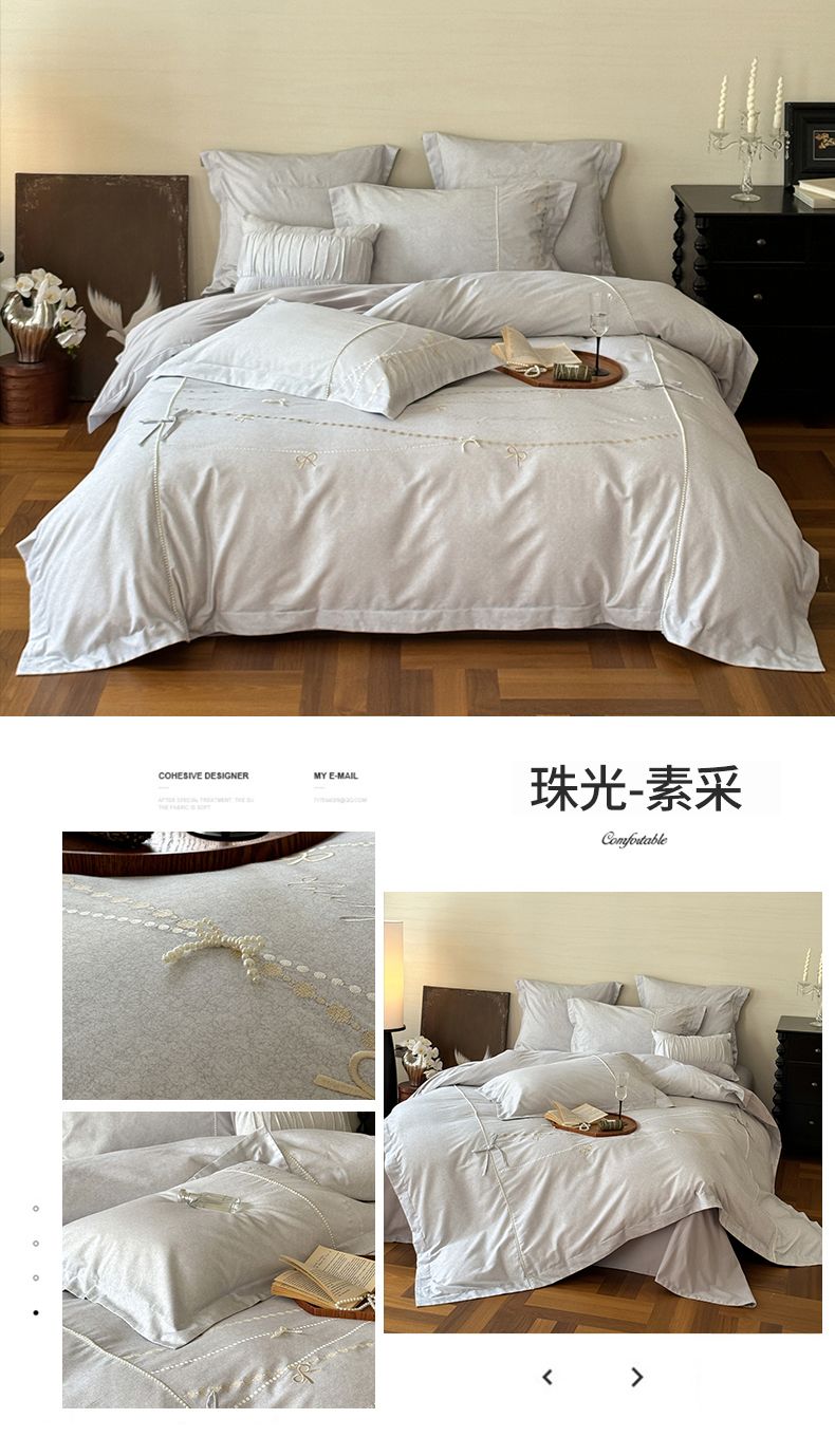 商品名称:(总)红番天家居馆 (控价)2025新款全棉云柔棉磨毛+磨毛肌理纹+工艺款四件套-珠光(每款供货价的基础上一切活动券后+100)