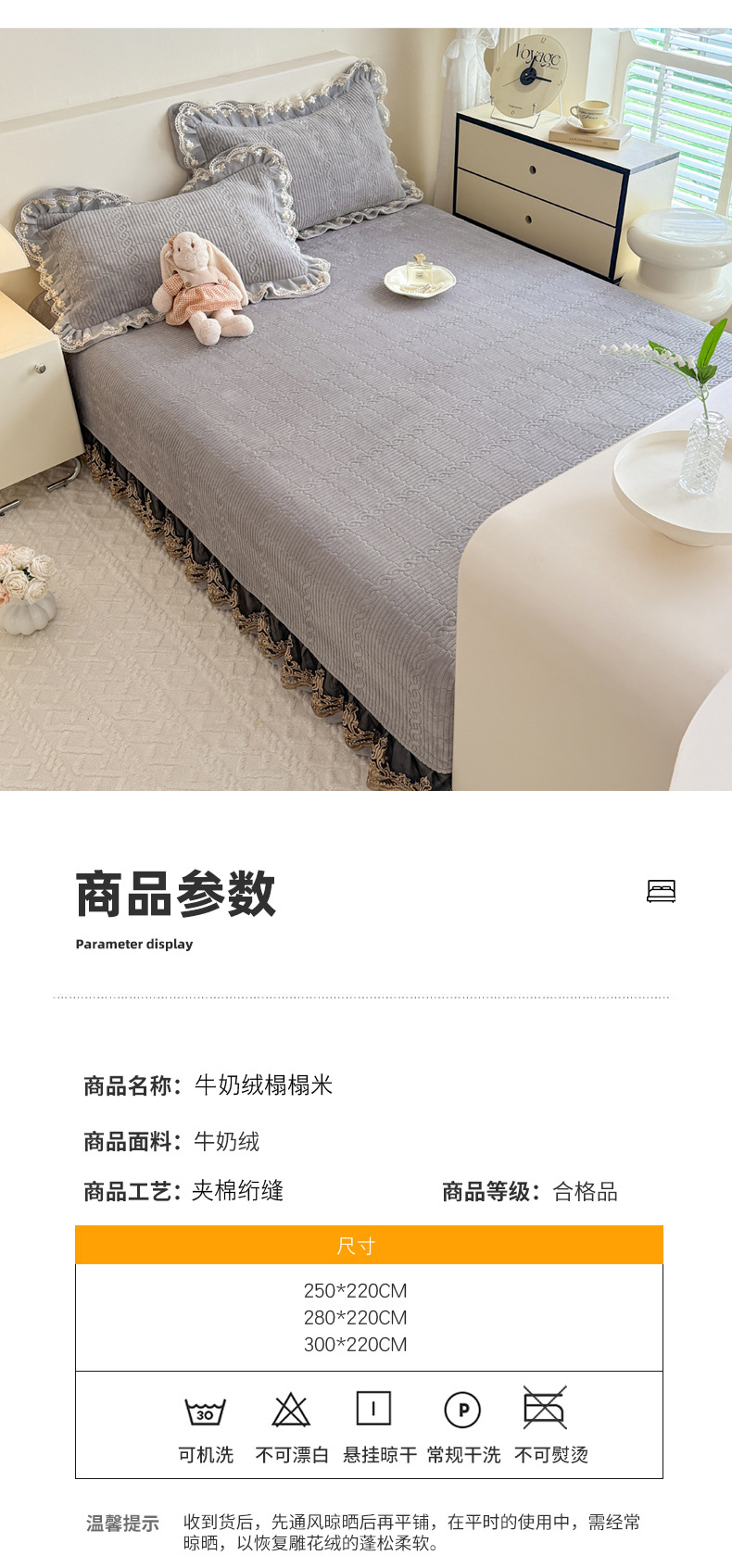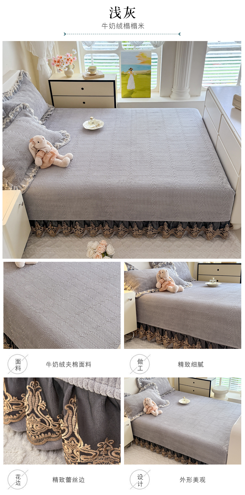 (总)美达家纺 2026新款13372全棉夹棉纯色床裙,玫瑰粉,木槿紫,浅砂灰,豆绿,高贵玉,灰紫,记忆粉,经典灰,魅力驼,米白,浅兰,绅士绿