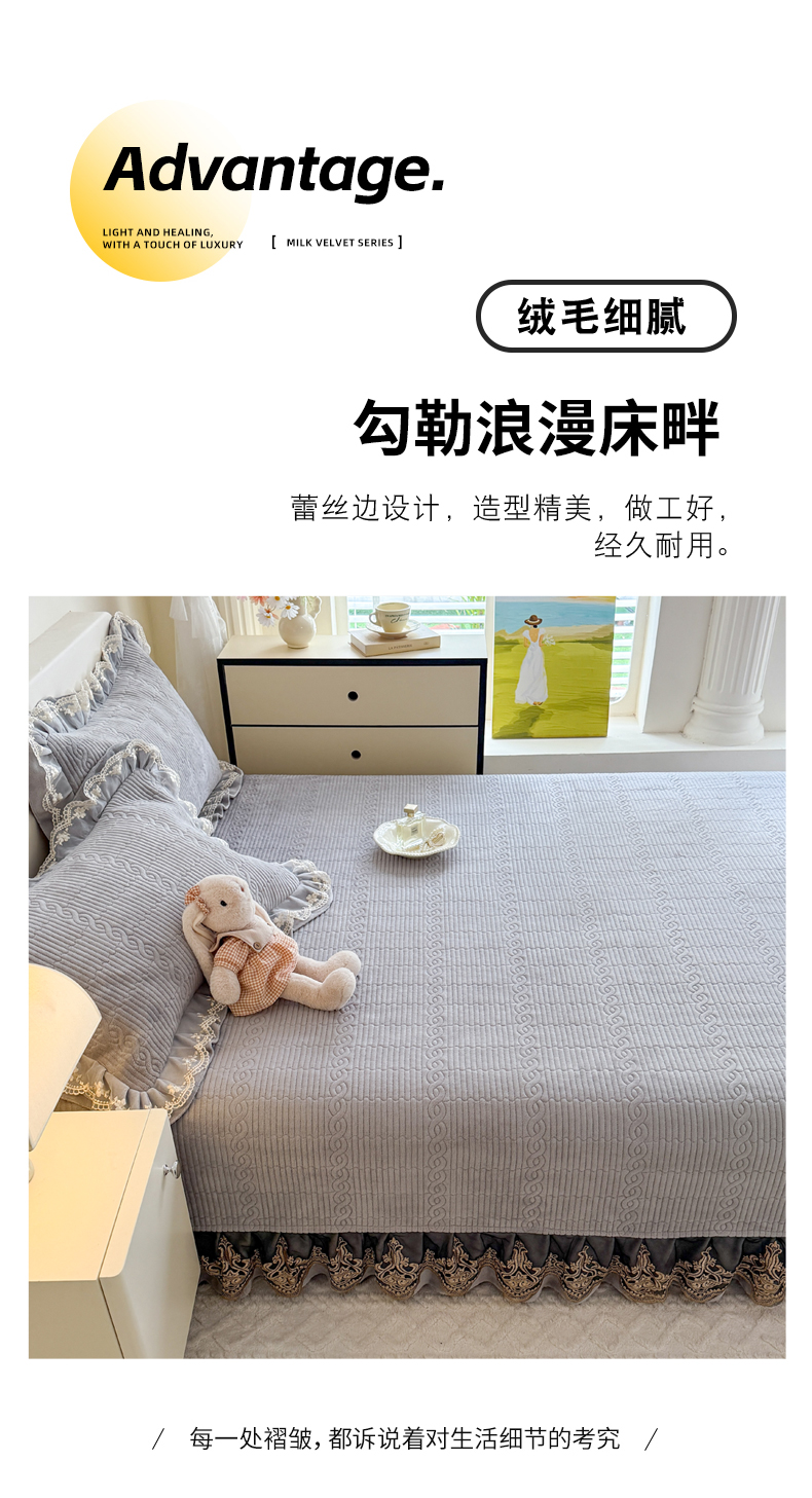 (总)美达家纺 2025新款牛奶绒雕花系列单床裙,床裙-爱心朵朵-咖,床裙-枫叶-绿,床裙-海浪涛涛-米白,床裙-蝴蝶花花-灰,床裙-丝丝如花-皮粉,床裙-丝丝如花-雾蓝