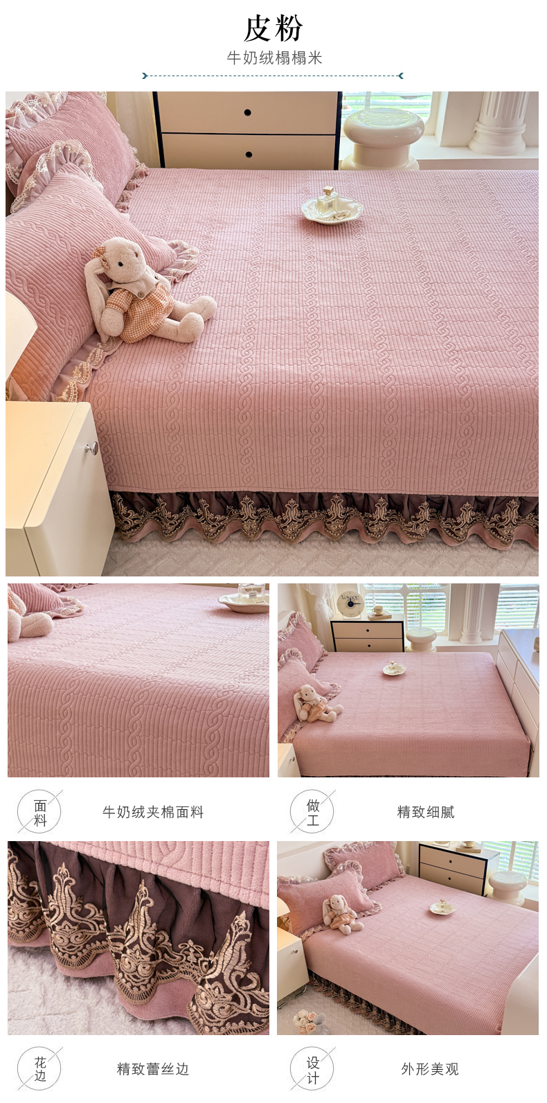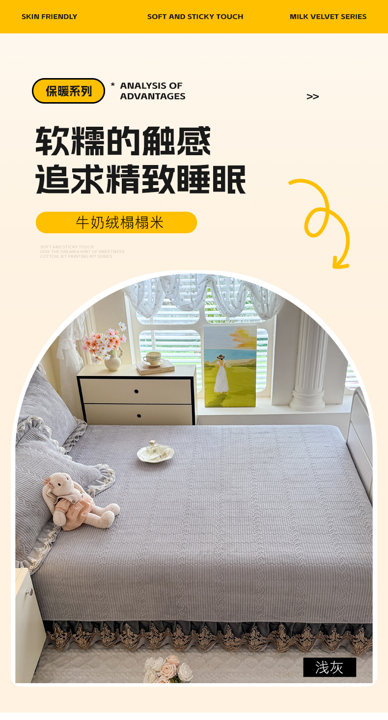 (总)美达家纺 2025新款高克重牛奶绒花边款夹棉床盖三件套,巴拉巴拉,格子萌熊,恐龙星球,梦蝶,时来运转,甜蜜奶吧,微笑熊,针织熊