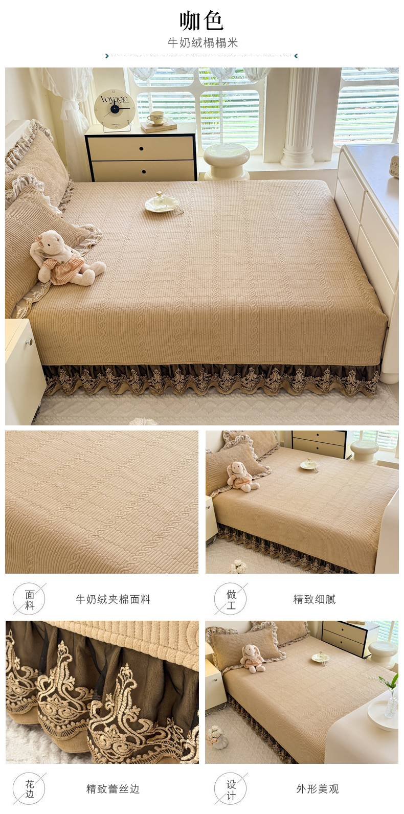 商品名称:美达家纺 2025新款牛奶绒纯色夹棉榻榻米 牛奶绒榻榻米-咖