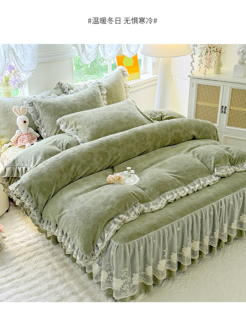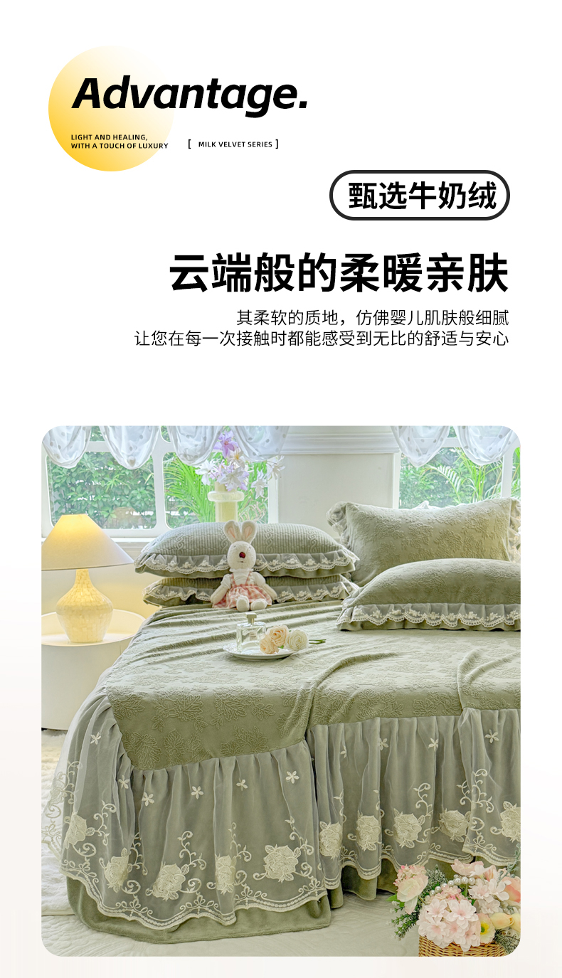 当前位置: 91家纺网 > 商品网购 > 床品套件 > 四件套 > 牛奶绒四件套 > 美达家纺 2025新款牛奶绒雕花系列床裙四件套 床裙-爱心朵朵-咖