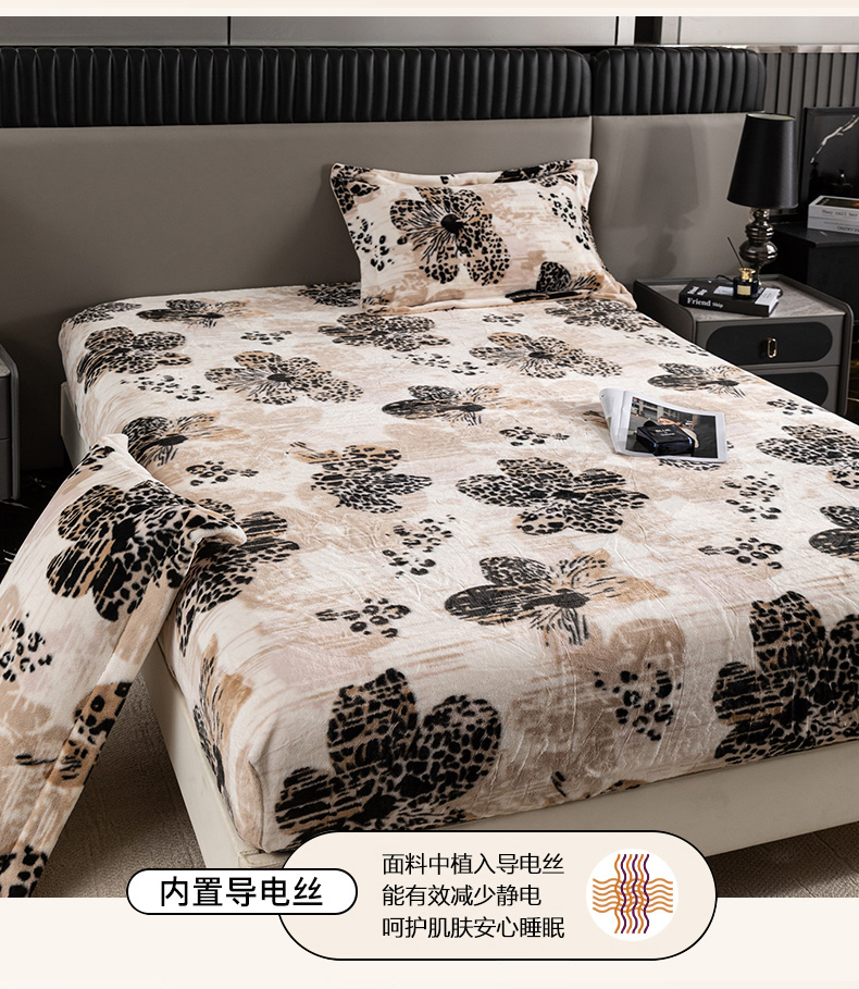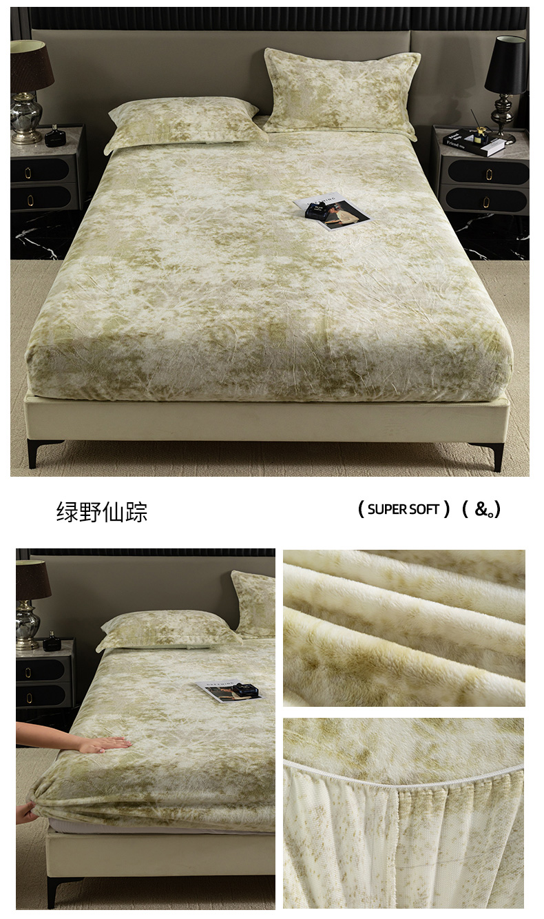 • 91家纺网 家纺一手货源 找家纺 锦罗绣 2025新款全消光兔绒300克牛奶绒床笠 满园金色