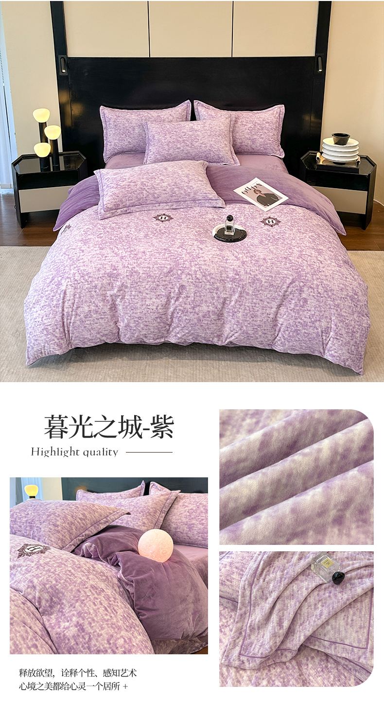 商品名称:喜四方 2025新款超细旦婴儿宝宝绒印花四件套 暮光之城紫