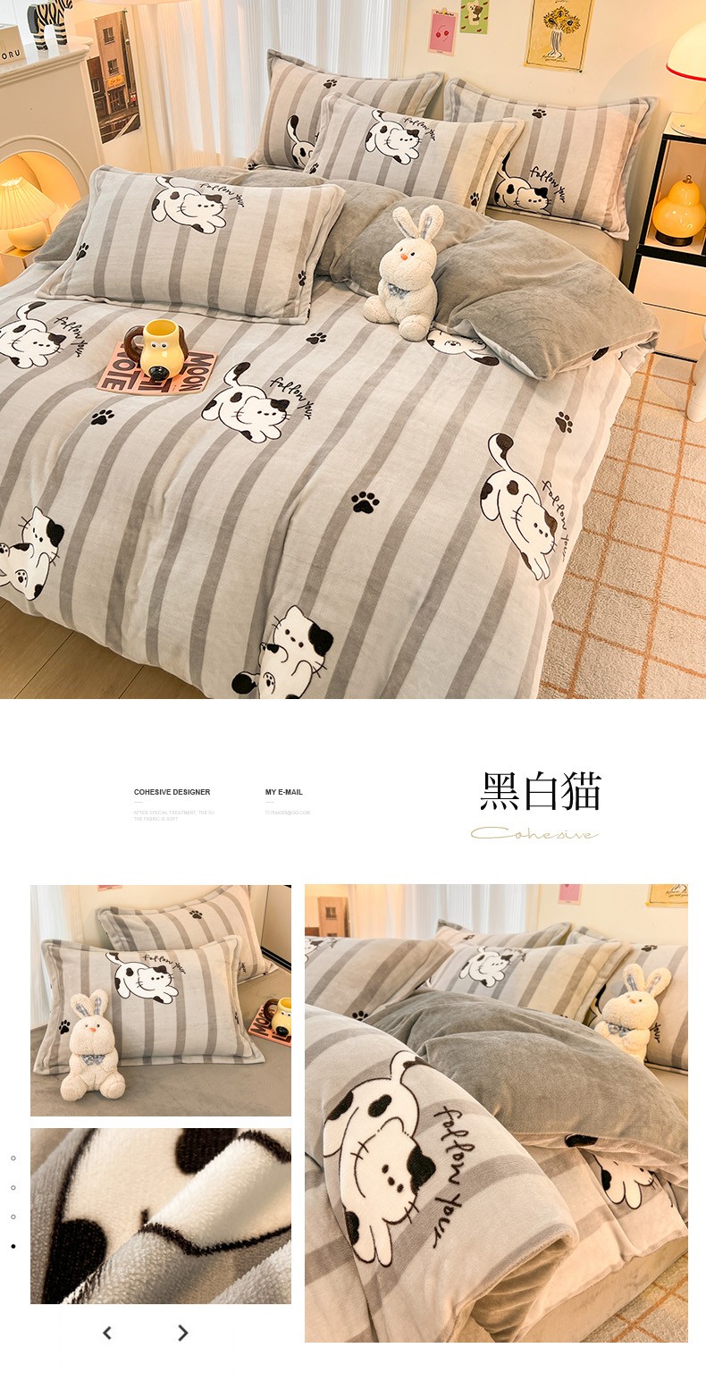商品名称:倾慕 2026新款高克重时尚印花牛奶绒单被套 黑白猫