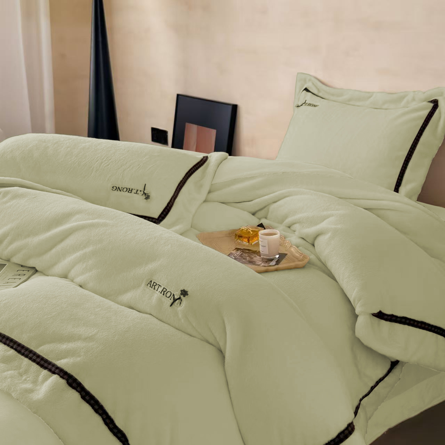 (总)玖玖爱家纺 2026新款波尔卡全棉全工艺AB版刺绣四件套,粉豆沙,暖米,浅绿,银灰