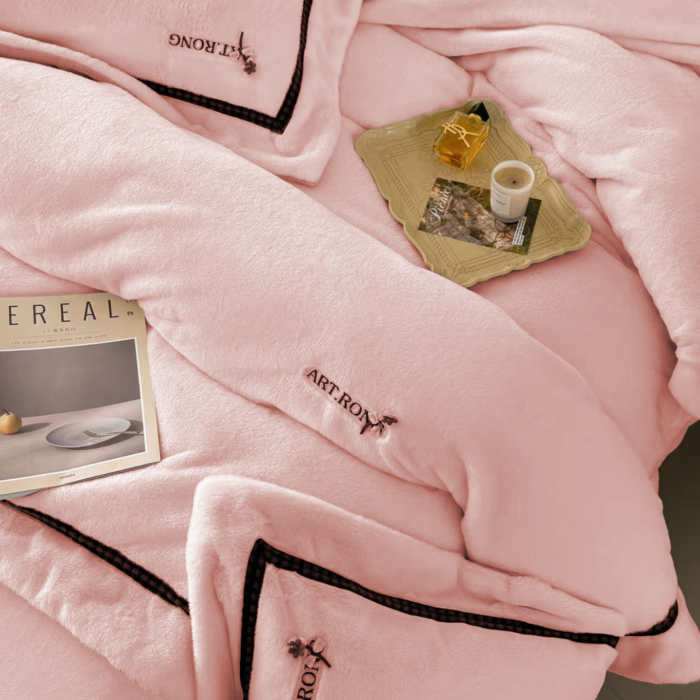 玖玖爱家纺 2025新款380克高克重大兔毛四件套 樱花粉
