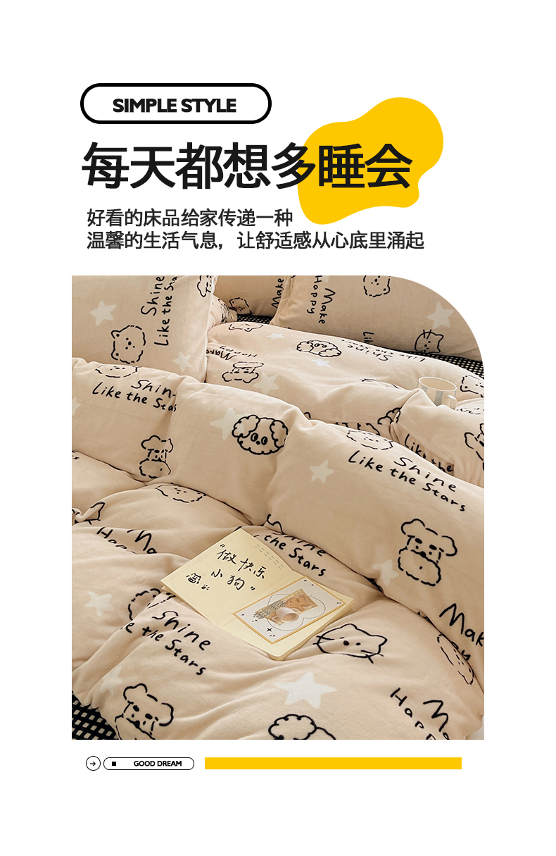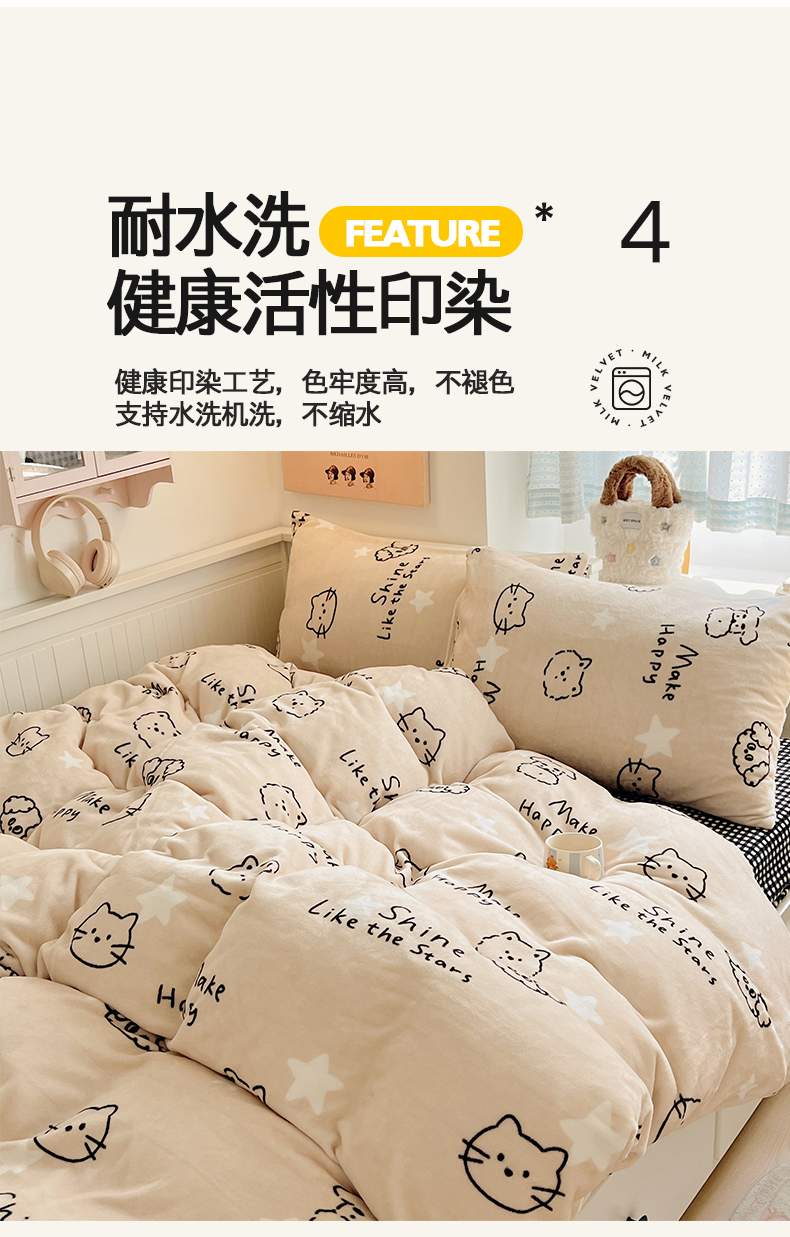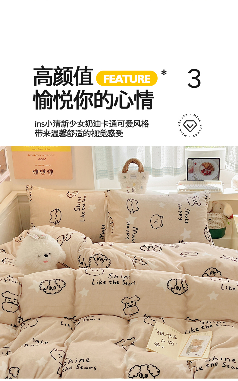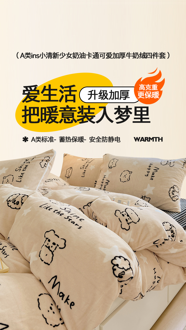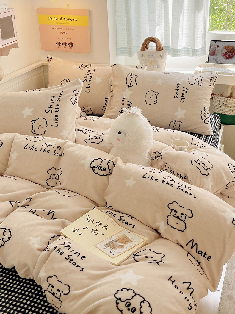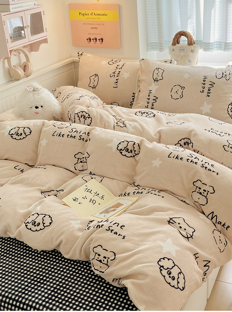 商品名称:金爱家 2025新款A类ins小清新少女奶油卡通可爱加厚牛奶绒四件套 绒-小涂鸦