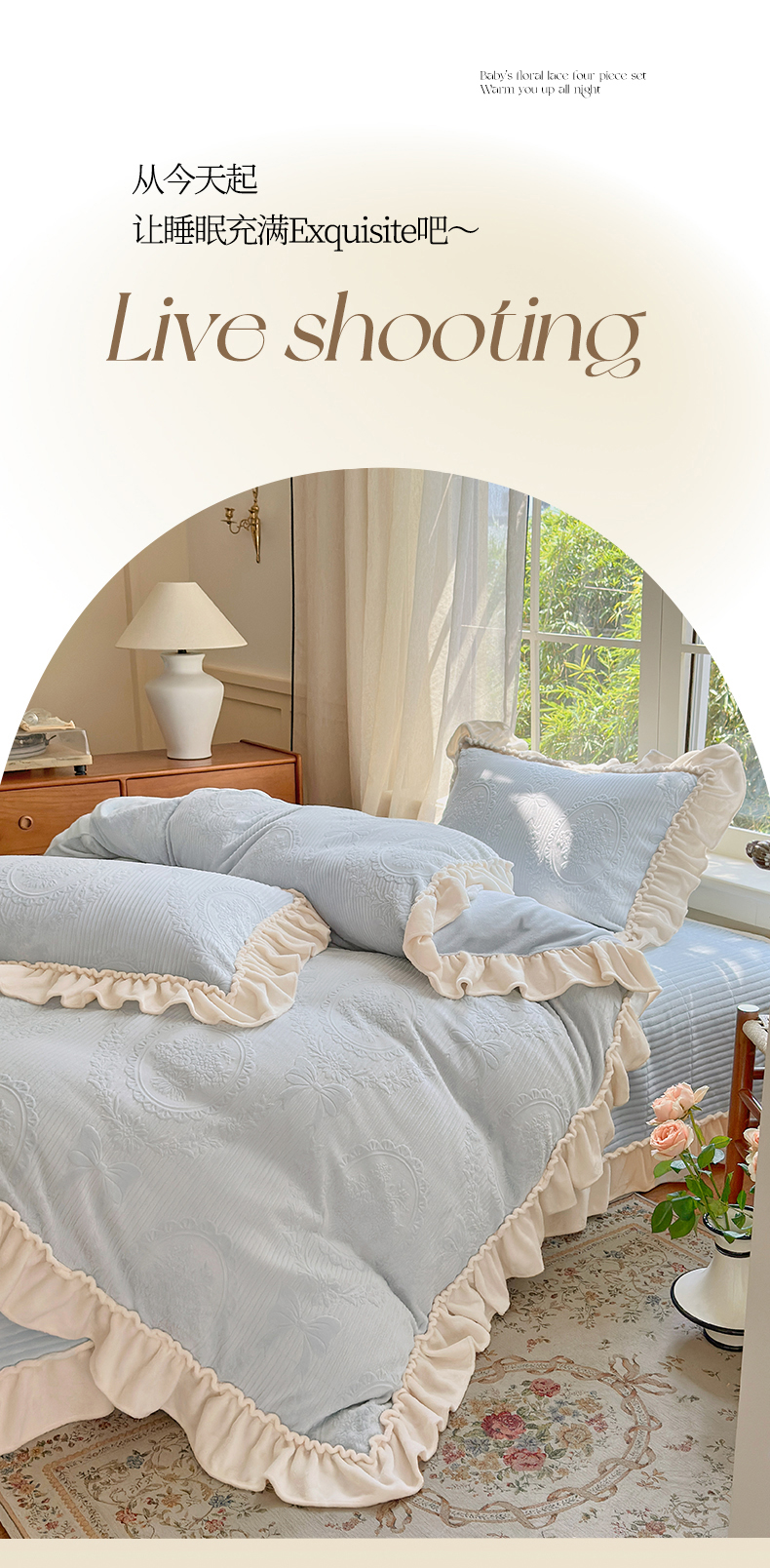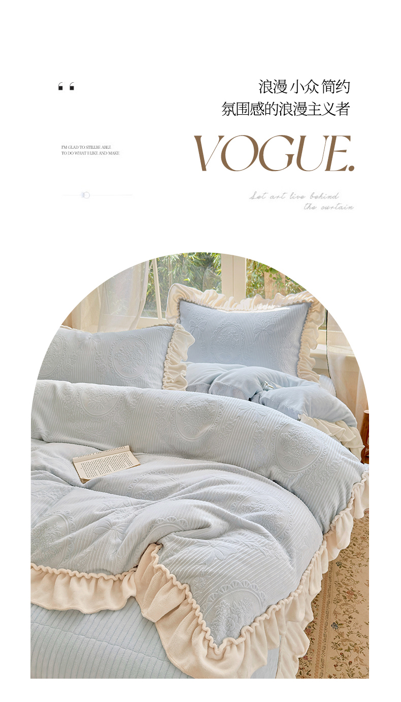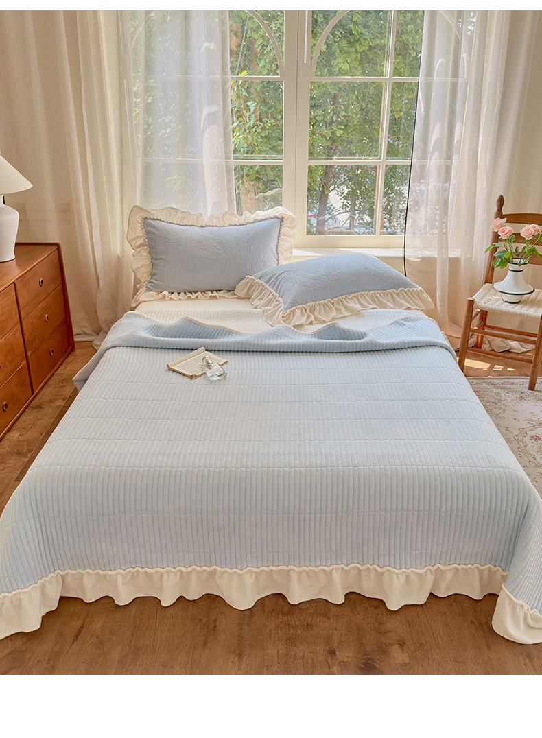 当前位置: 91家纺网 > 商品网购 > 床品套件 > 四件套 > 牛奶绒四件套 > 乐野家居 2025年新款轻法式甜心蝴蝶结高克重提花牛奶绒床盖四件套 甜心蝴蝶结-兰