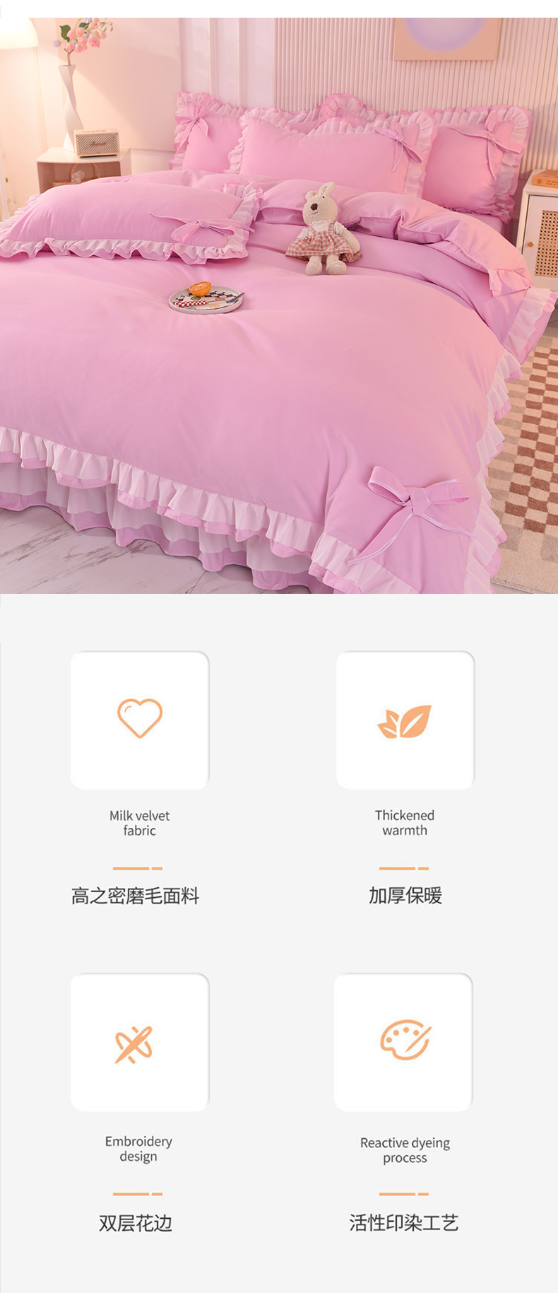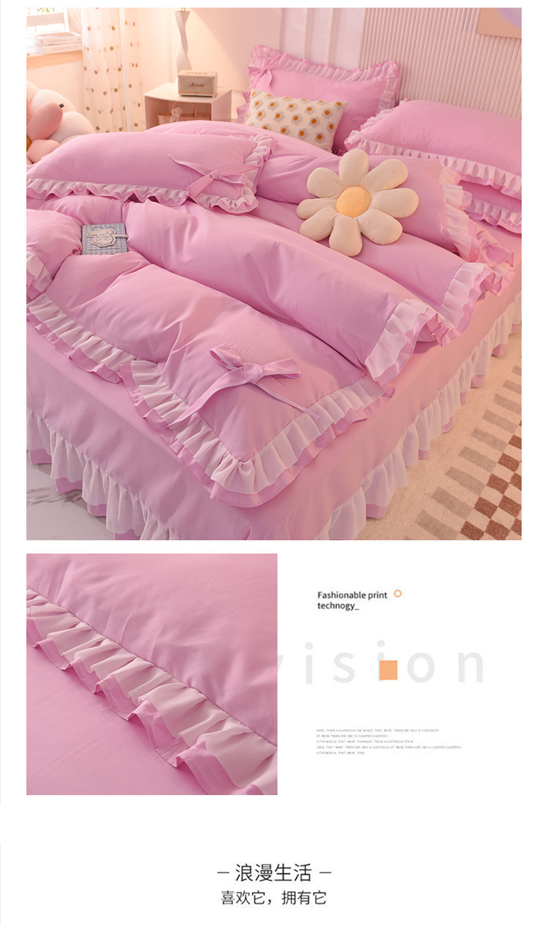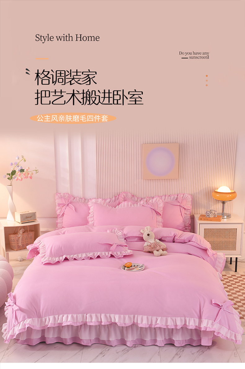 当前位置: 91家纺网 > 商品网购 > 床品套件 > 四件套 > 其它四件套 > 后庭寝室 2025新款公主风亲肤磨毛蝴蝶结四件套-爱巢 爱巢-粉色