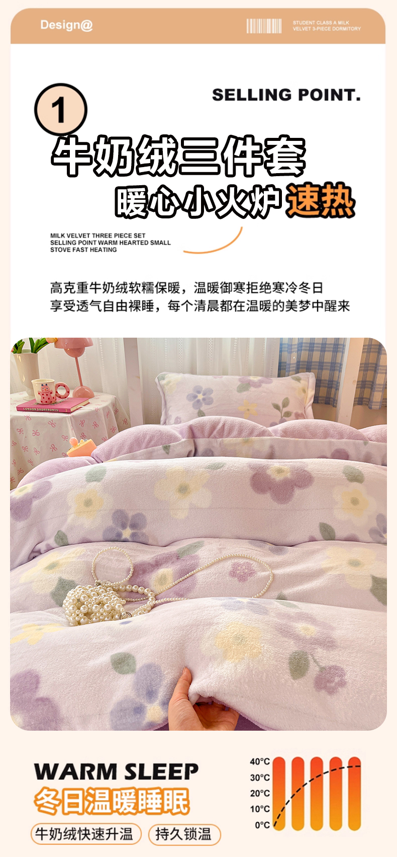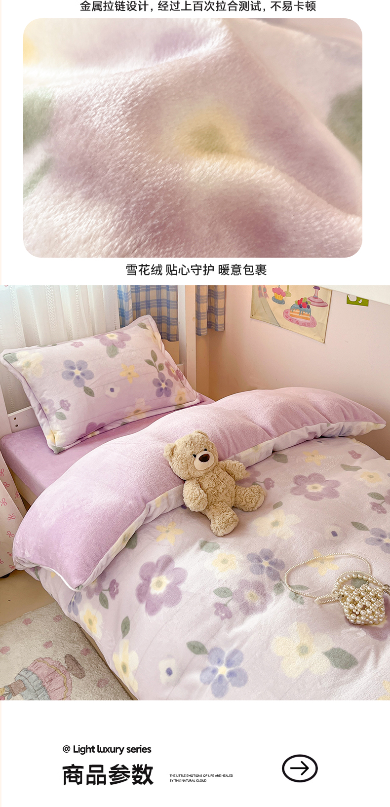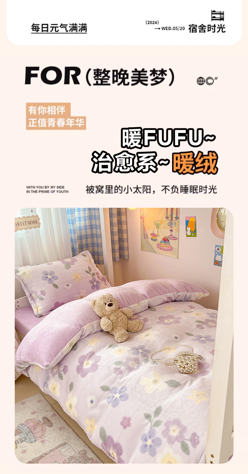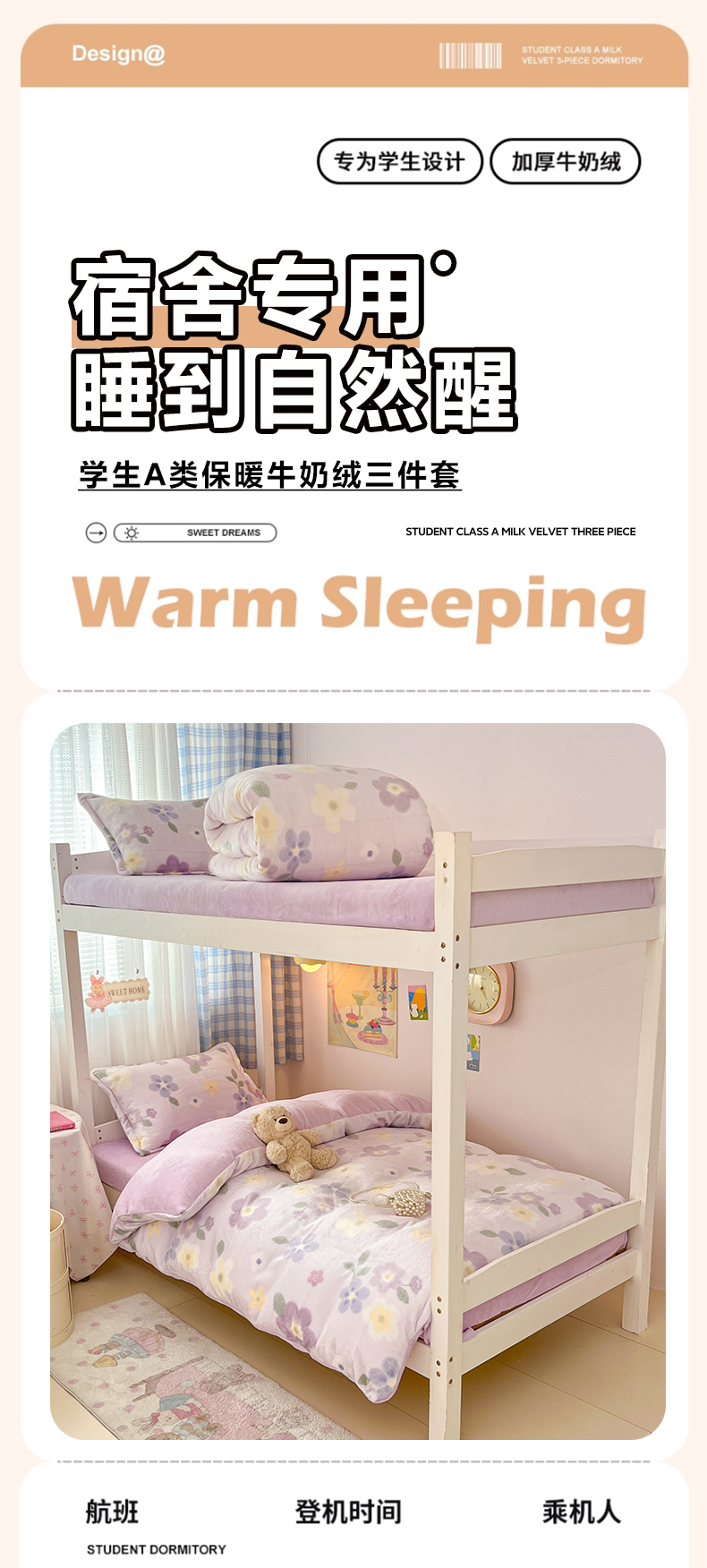 当前位置: 91家纺网 > 商品网购 > 床品套件 > 三件套 > 川悦生活 2025新款加厚保暖高克重牛奶绒宿舍三件套 莉莉柒缇