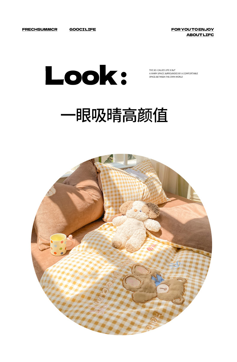 (总)雨帆家纺 2025新款可爱卡通牛奶绒贴布绣四件套,粉格小猫,黄格+咖小熊,蓝格西高地,奶粉小猫,奶咖小熊,奶油蓝西高地