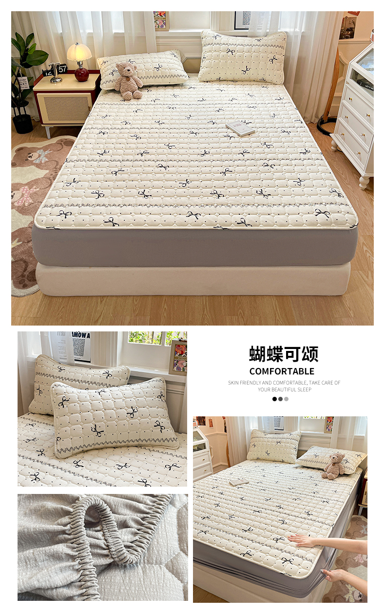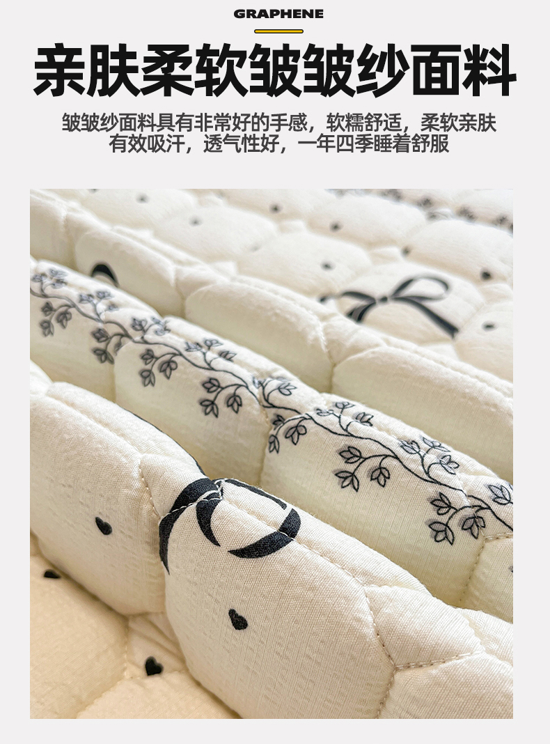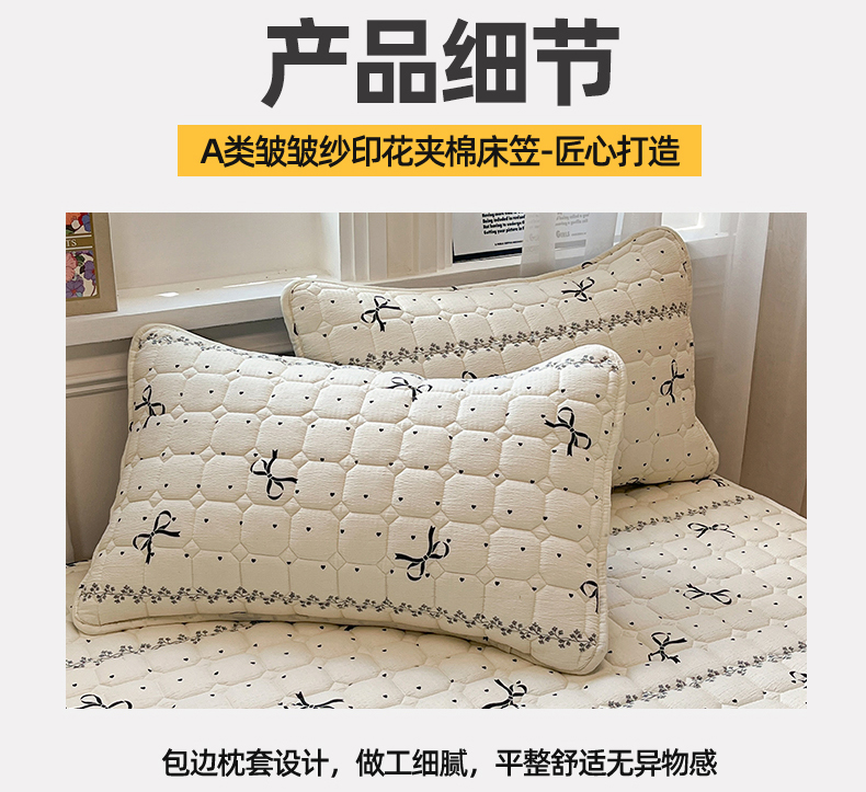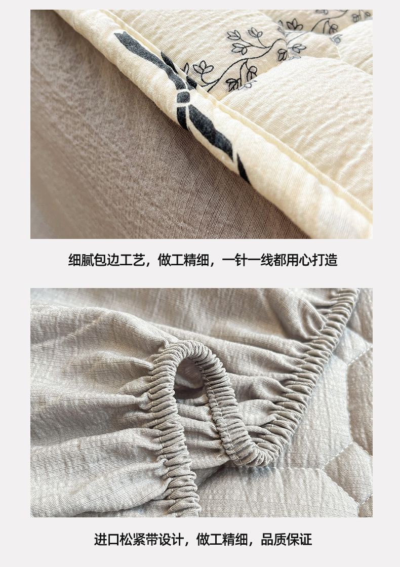 商品名称:布卢姆床垫 2025新款A类皱皱纱印花夹棉床笠 蝴蝶可颂