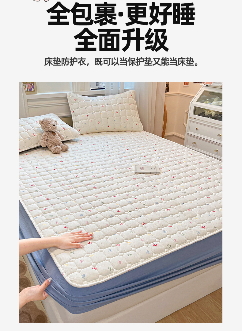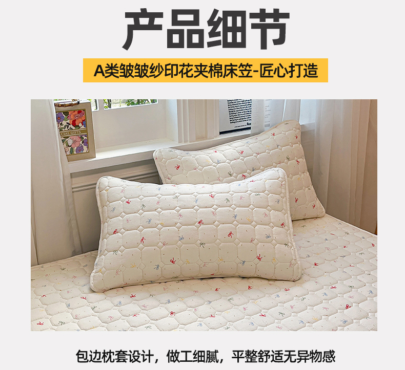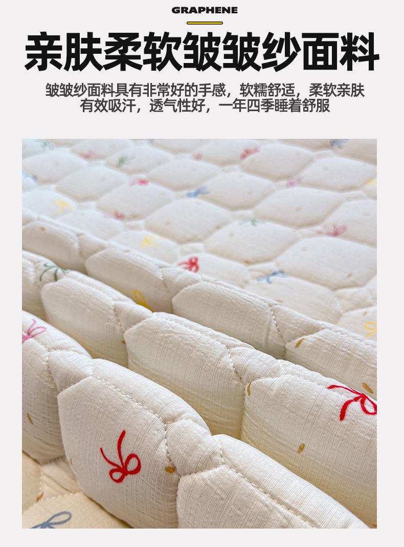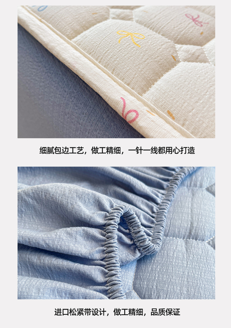 商品名称:布卢姆床垫 2025新款A类皱皱纱印花夹棉床笠 仙女多巴胺