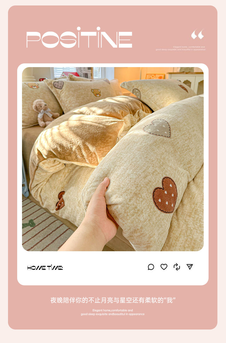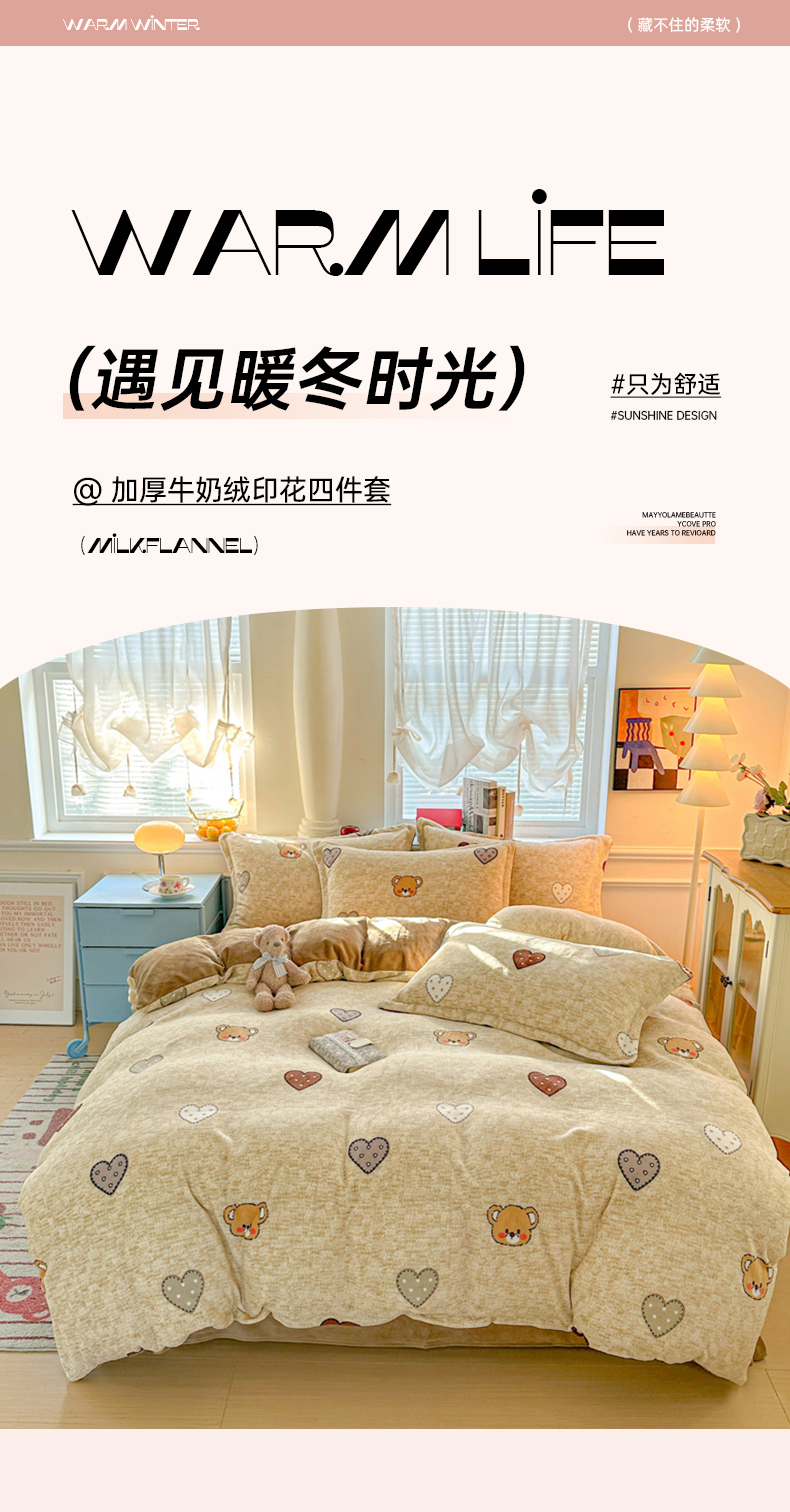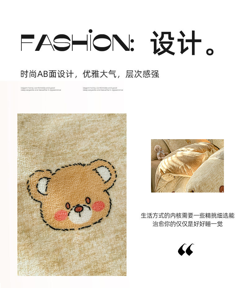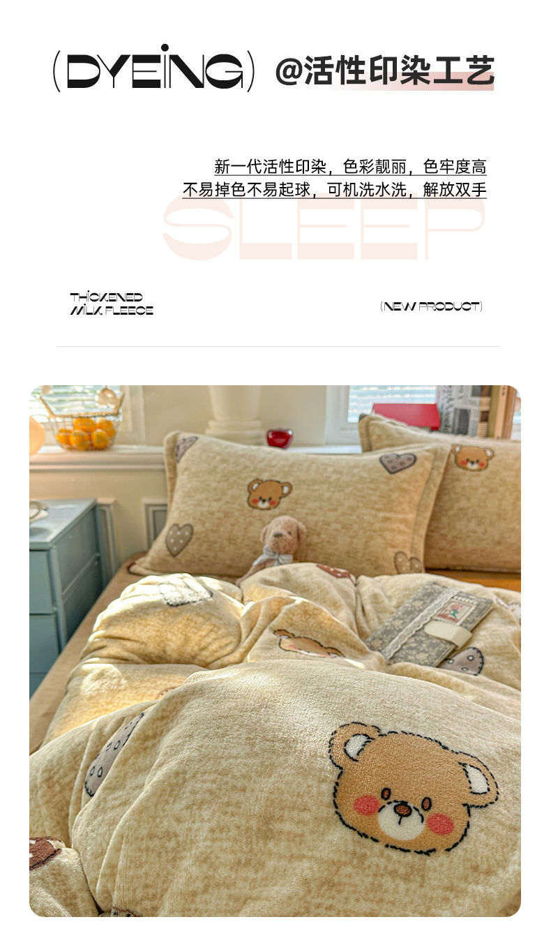 商品名称:卡普家居 2025新款加厚保暖牛奶绒系列--四件套 萌萌熊