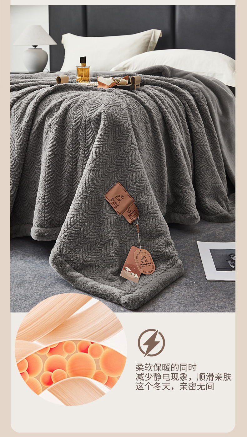 凯轩毛毯网销专供 2025新款仿羔羊绒毯毛毯婚庆毯保暖毯子 高级灰