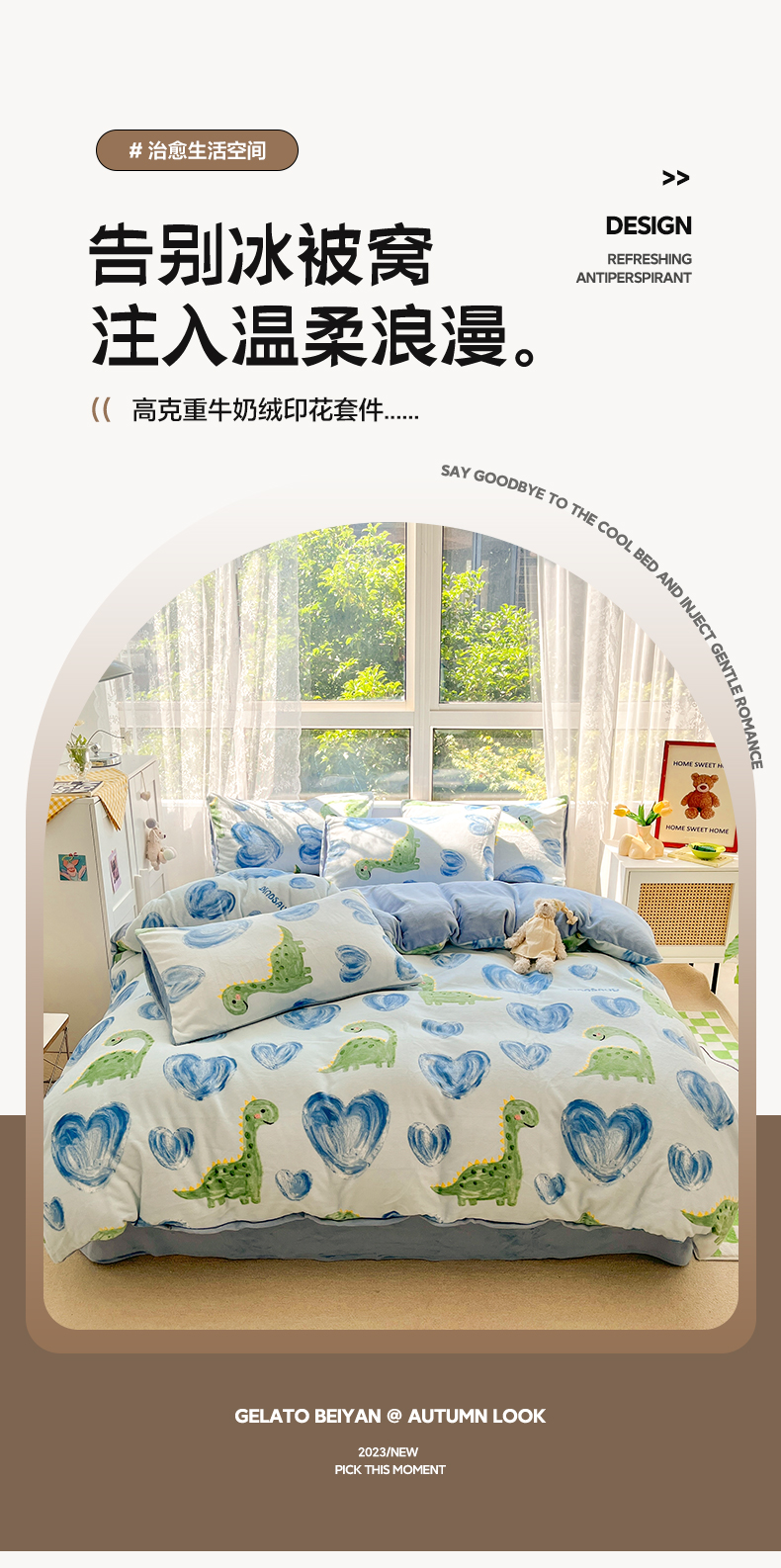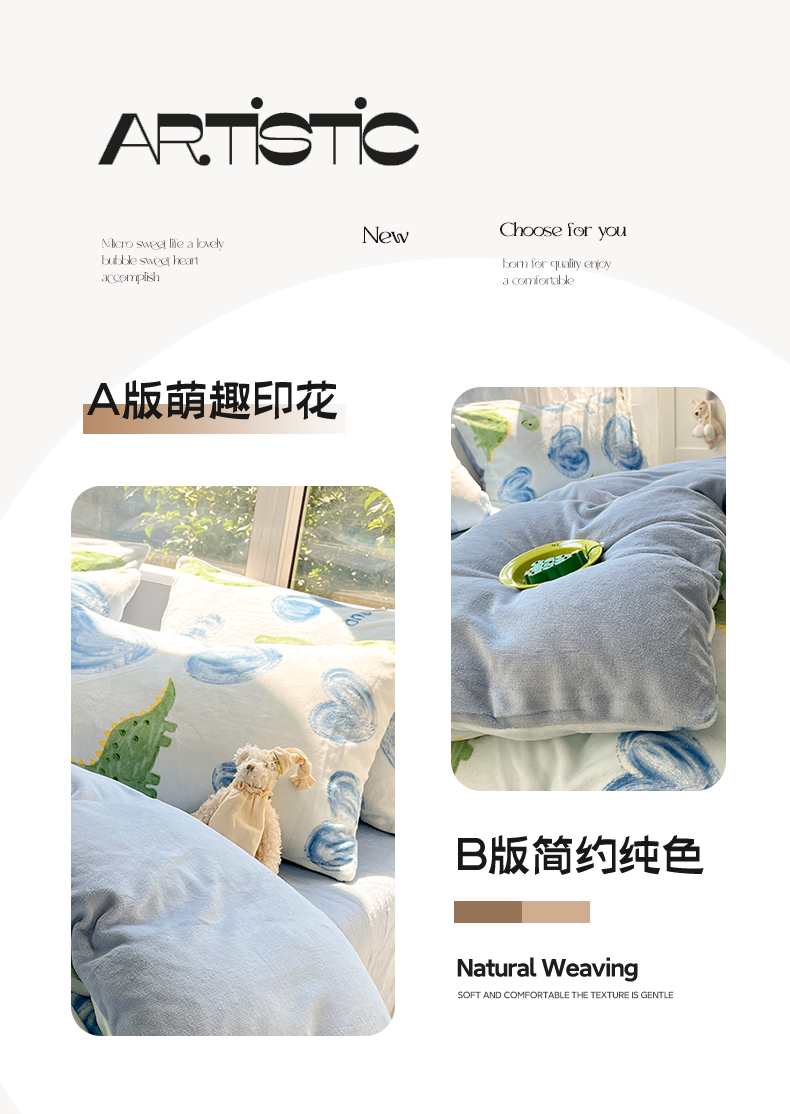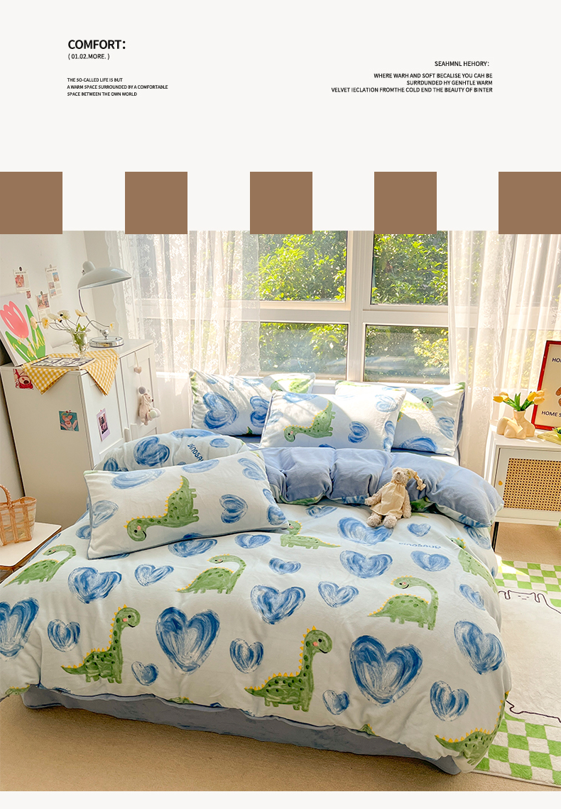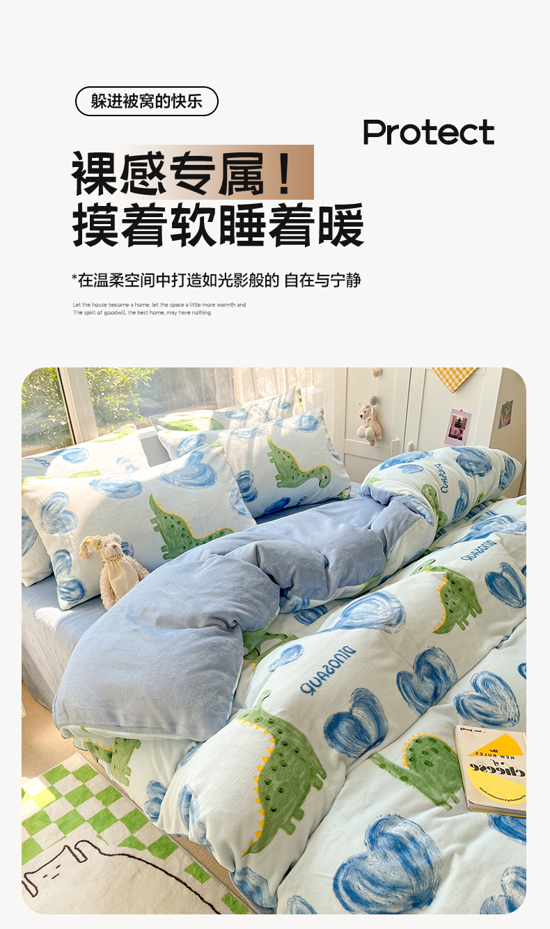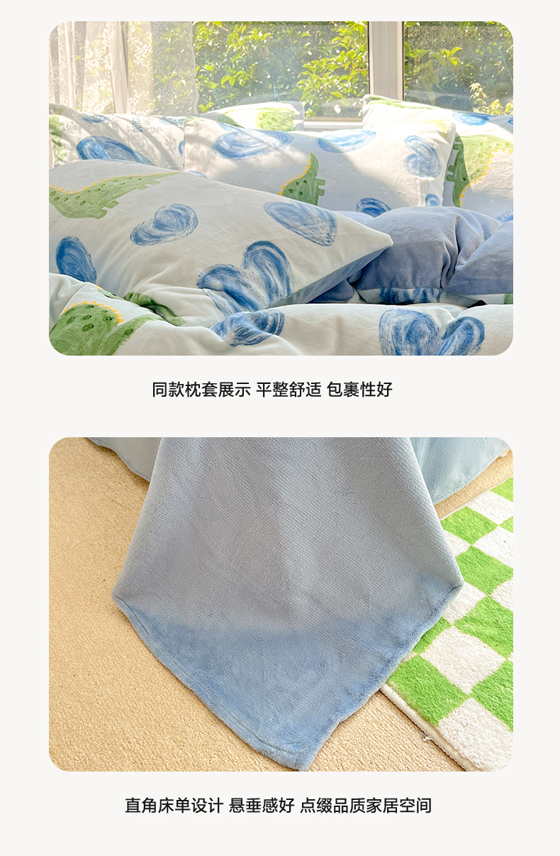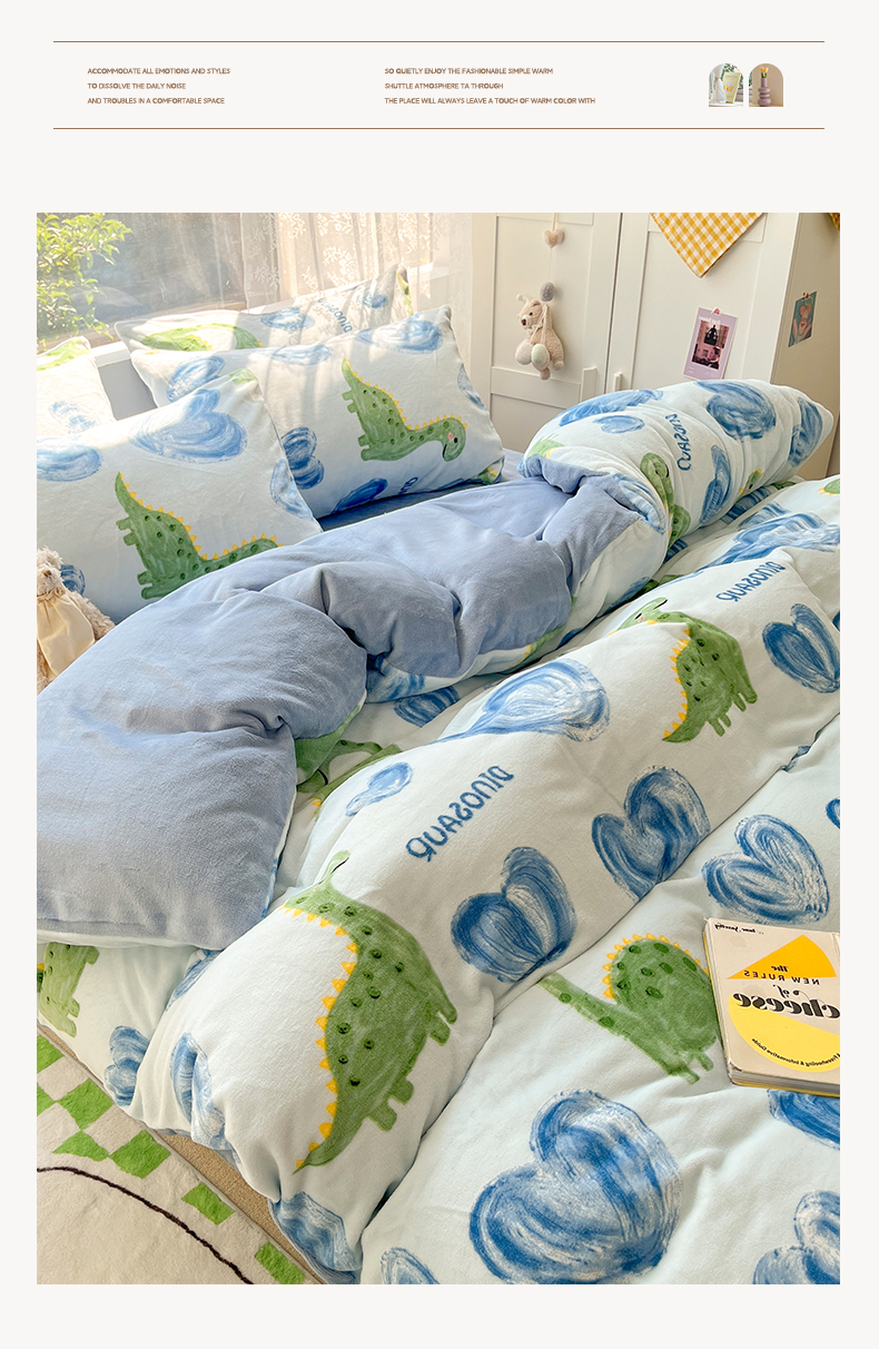 商品名称:雅居纺家纺 2025新款高克重牛奶绒印花单被套 爱心恐龙