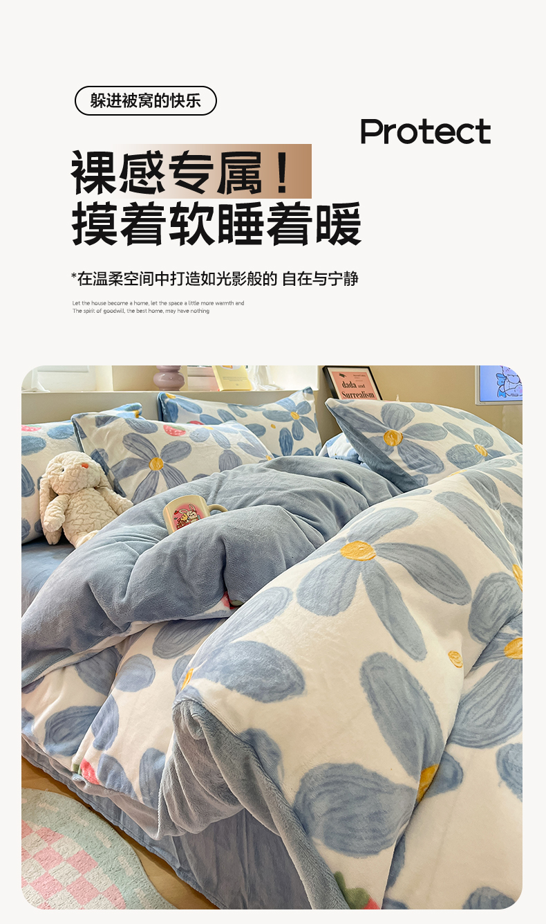 雅居纺家纺 2025新款高克重牛奶绒印花单被套 蓝墨花朵