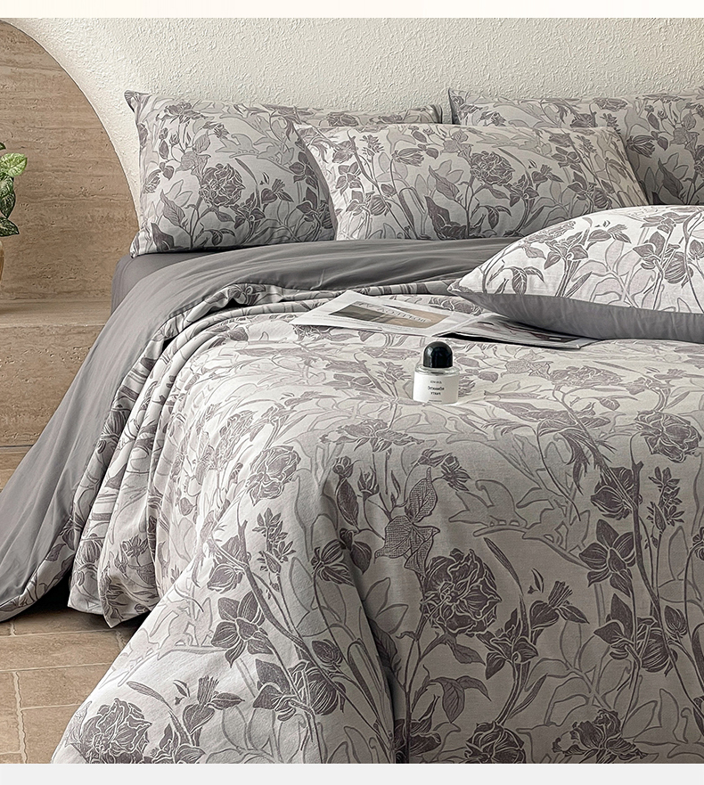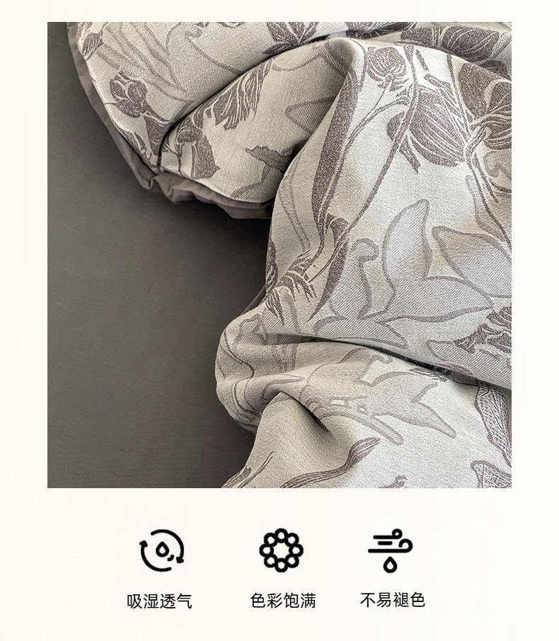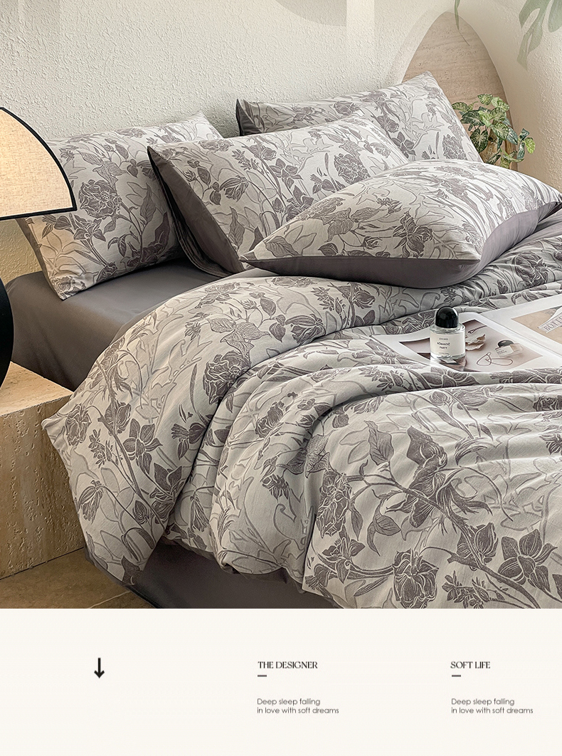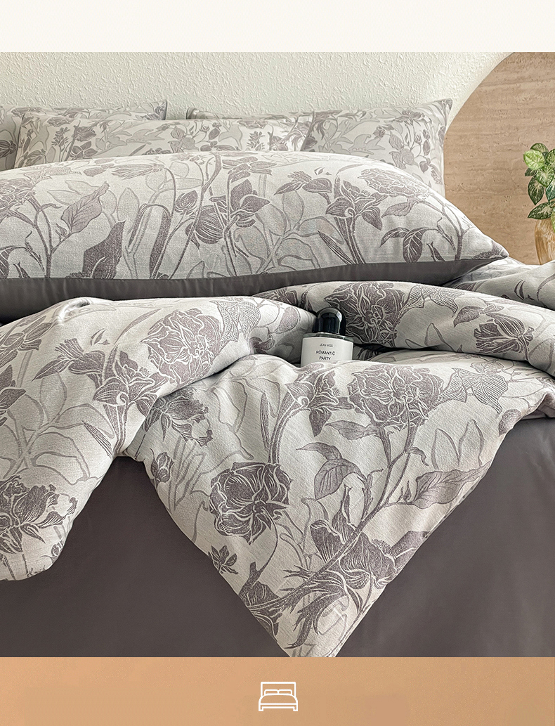 当前位置: 91家纺网 > 商品网购 > 床品套件 > 四件套 > 双层纱四件套 > 琪格格纺织 2025新款全棉纯棉双层纱提花四件套 双层纱-洛丽塔灰