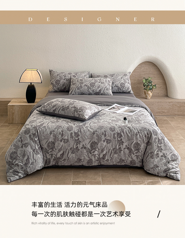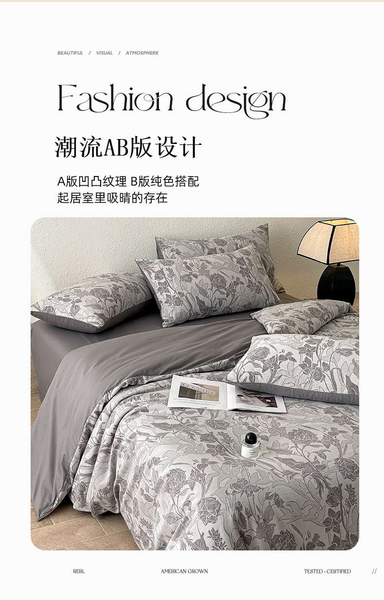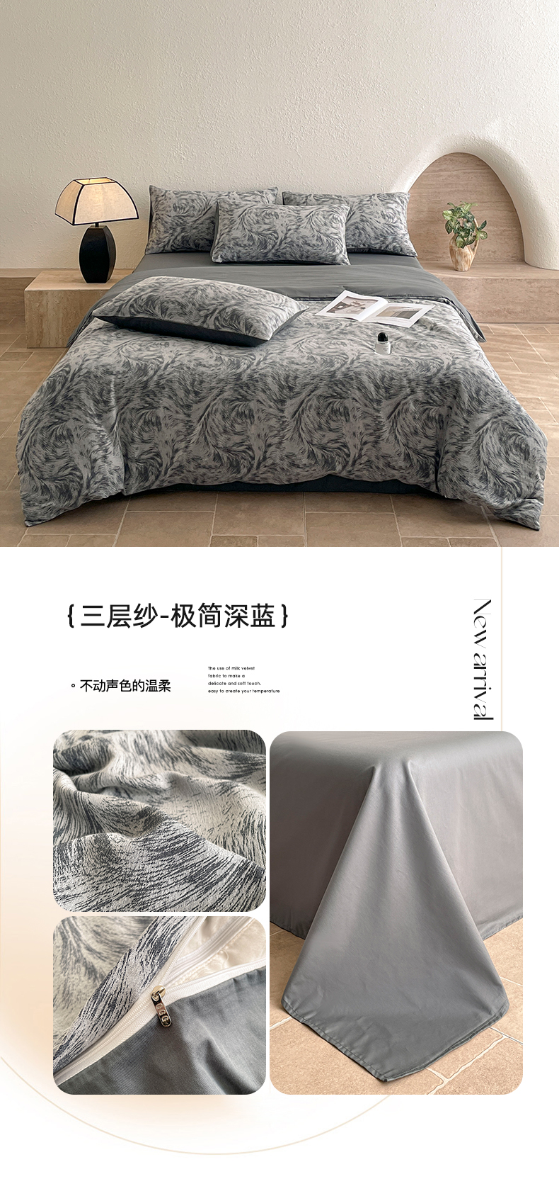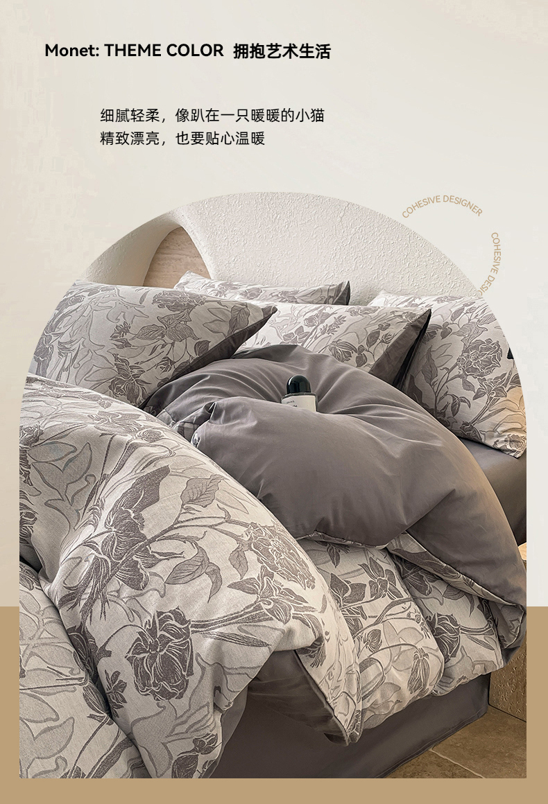当前位置: 91家纺网 > 商品网购 > 床品套件 > 四件套 > 双层纱四件套 > 琪格格纺织 2025新款全棉纯棉双层纱提花四件套 双层纱-洛丽塔灰
